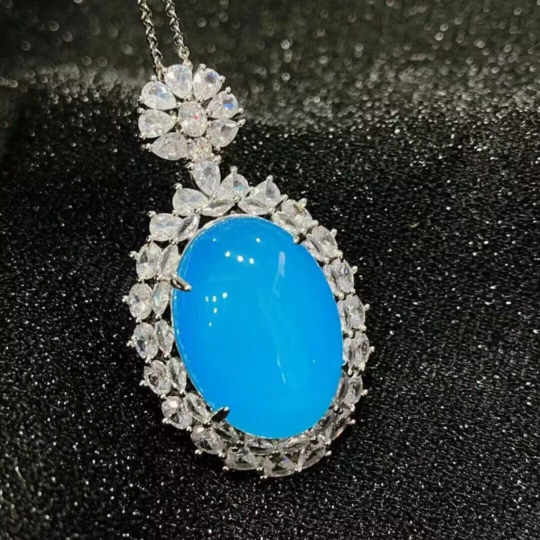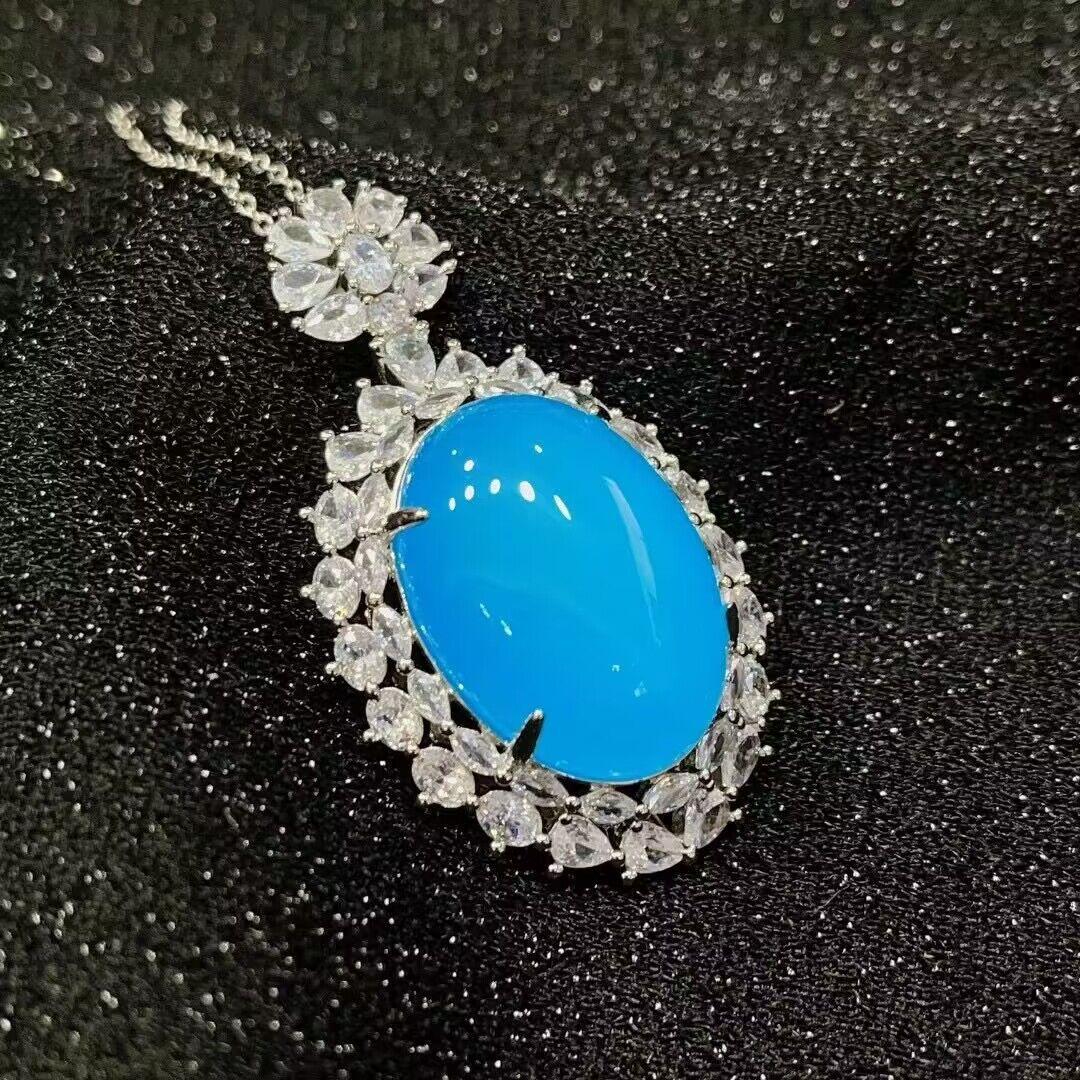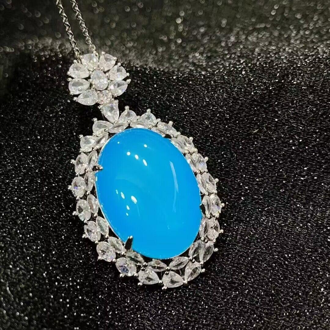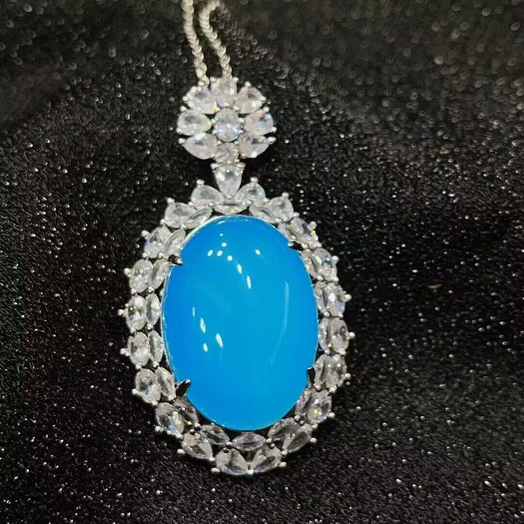 [Nome do bebê] Pingente de ovo de pombo de calcedônia azul requintado
