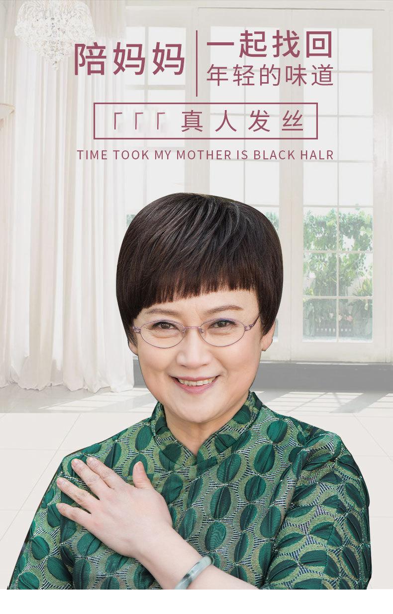 Peruca de meia-idade e idosa feminina curta enviar mãe cabelo real feminino capa de cabeça cheia fofa peruca de cabelo real natural
