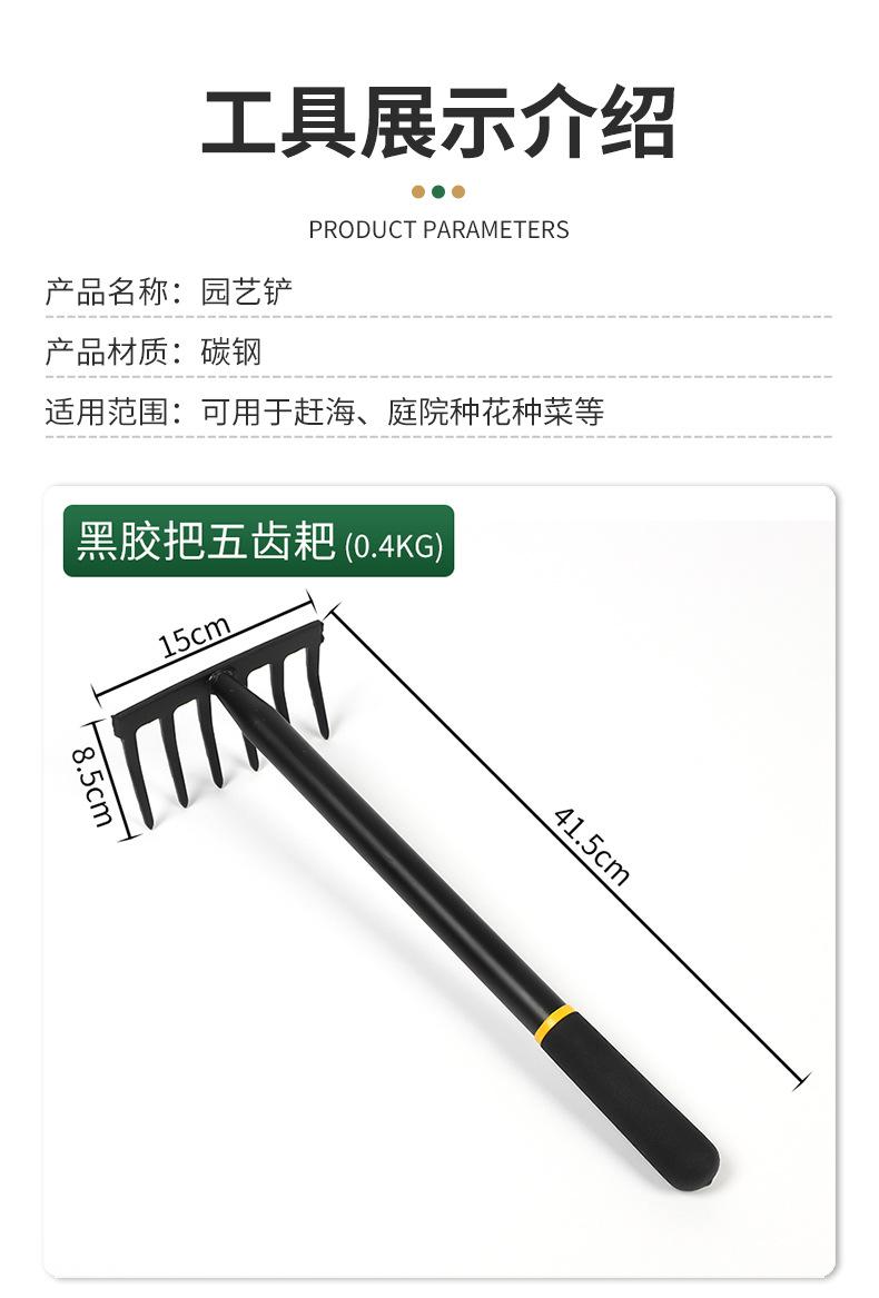 Vinyl handle wide shovel, Black glue, Five-tooth rake with vinyl handle, Narrow shovel with vinyl handle