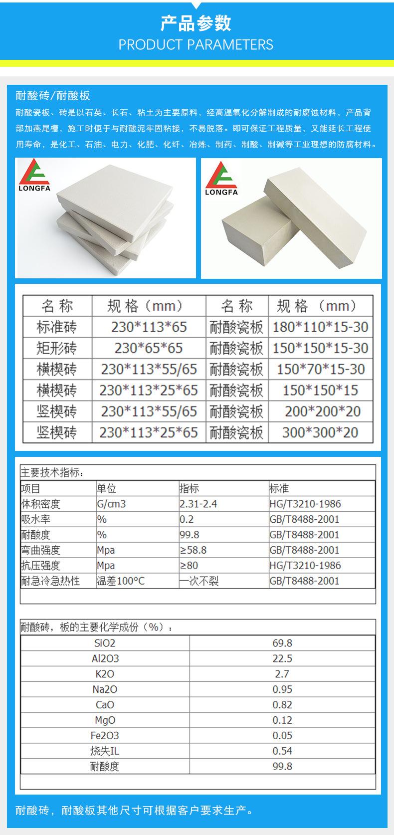 Tijolo resistente a ácidos Jiangxi Longfa 230 * 113 * 65mm telha cerâmica resistente a ácidos fornece superfície lisa de tijolo resistente a ácidos em grandes quantidades