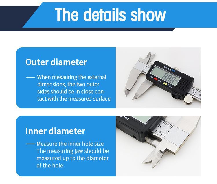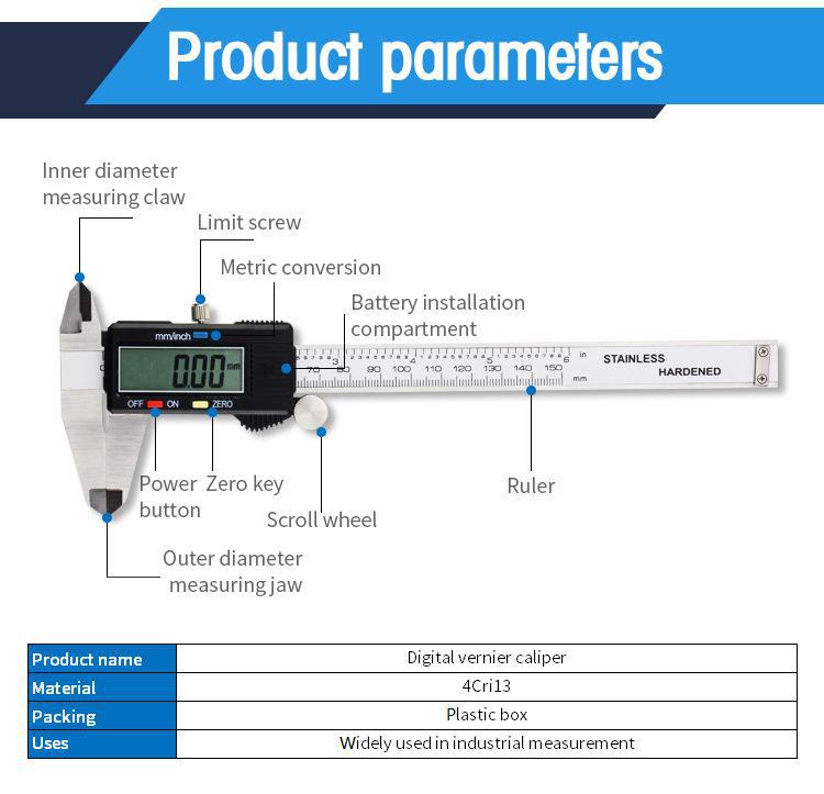 Medidor de passo de profundidade de diâmetro interno e externo 4cr13 display digital de aço inoxidável vernier paquímetro, 0-150 / 0-200 / 0-300mm
