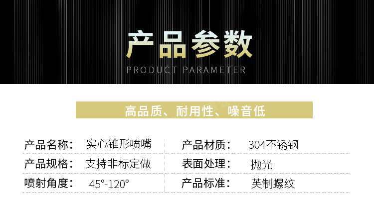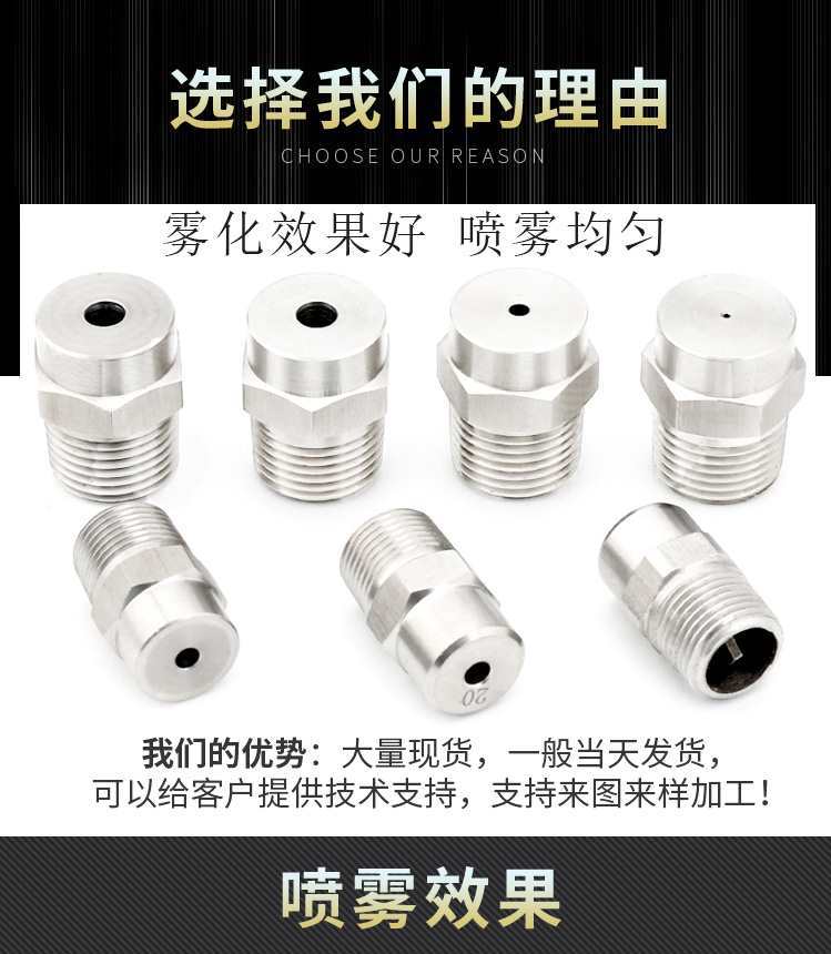 Bico de atomização de aço inoxidável 304 bico de pulverização de alta pressão cone sólido redondo remoção de poeira cabeça do bico de resfriamento de baixa pressão