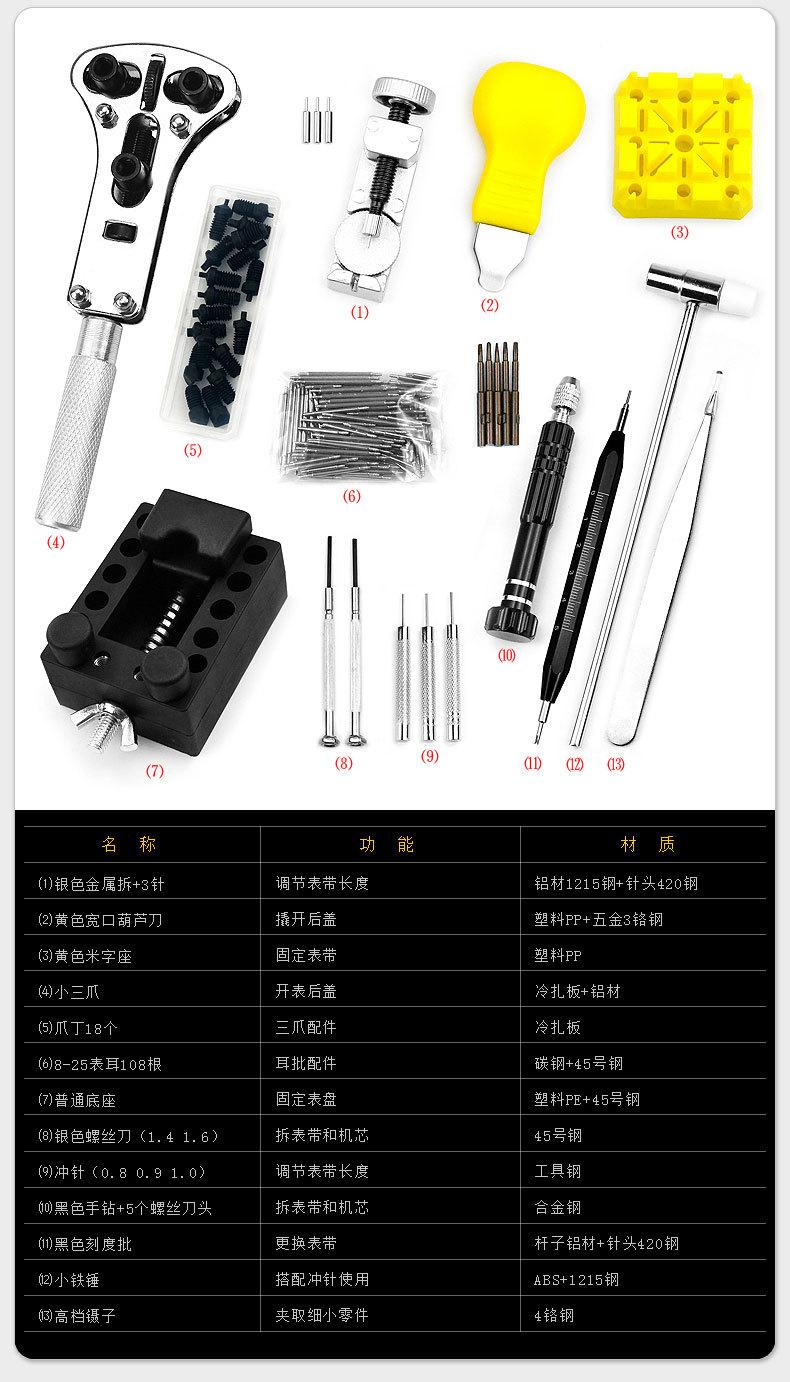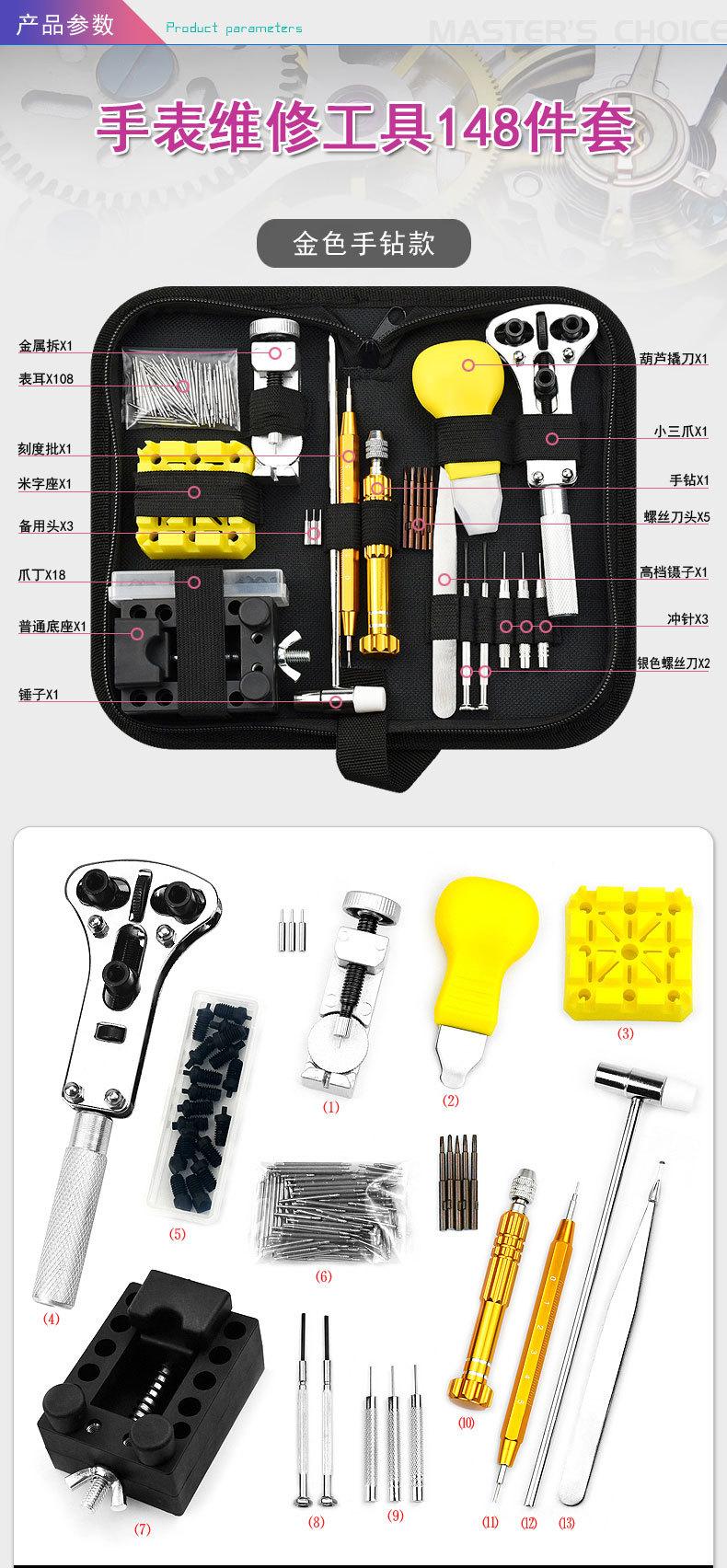 Conjunto de ferramentas de reparo de relógio de 148 peças de venda quente transfronteiriça Ferramenta de reparo de relógio Conjunto de ferramentas de combinação de 148 peças
