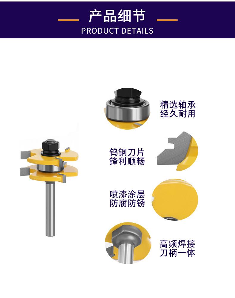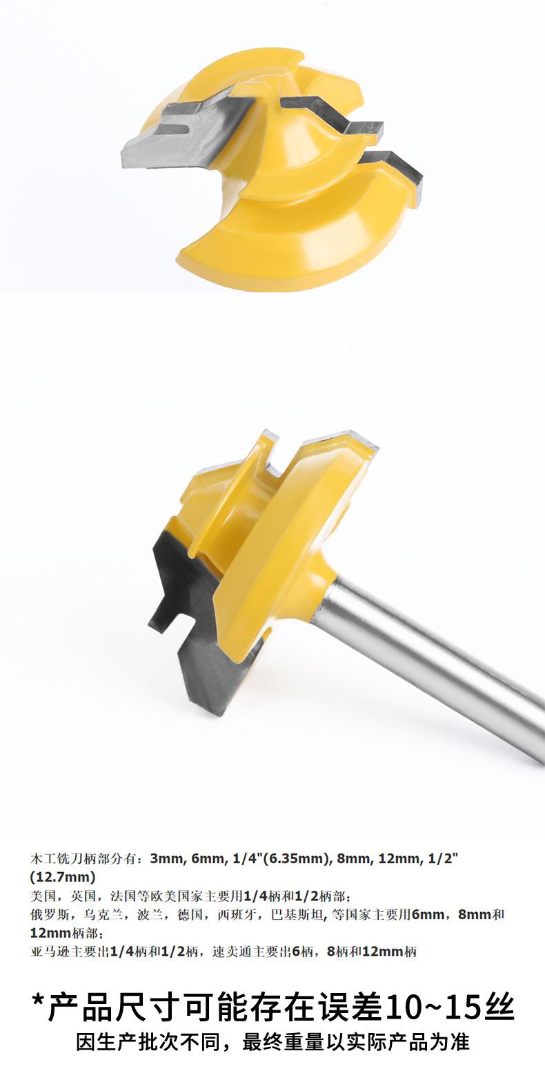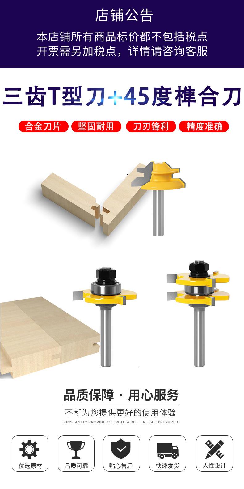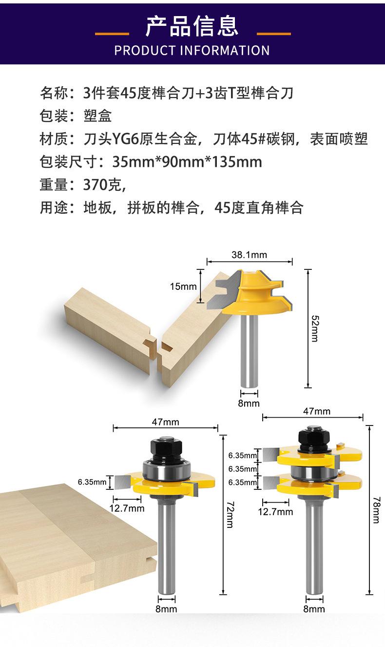 Cortador de encaixe em forma de T de 3 dentes, cortador de encaixe de 45 graus, cabeça de corte de máquina de aparar de 3 peças, cortador de placa de emenda, fresadora especial para marcenaria