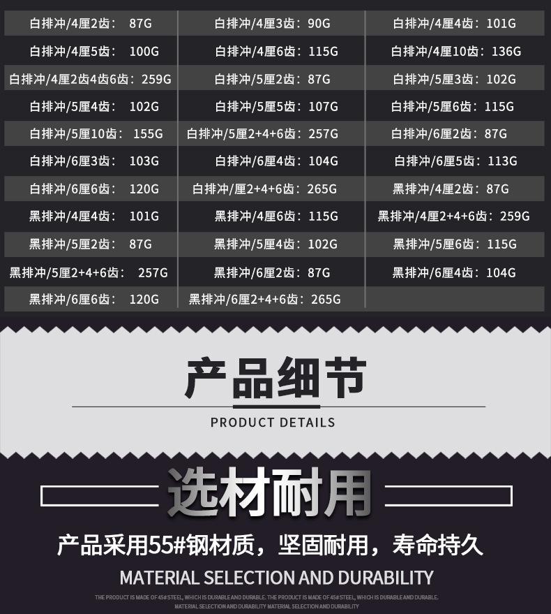 White row punching spacing 4 PCT 2 teeth, White row punching spacing 4 PCT 3 teeth, White row punching spacing...