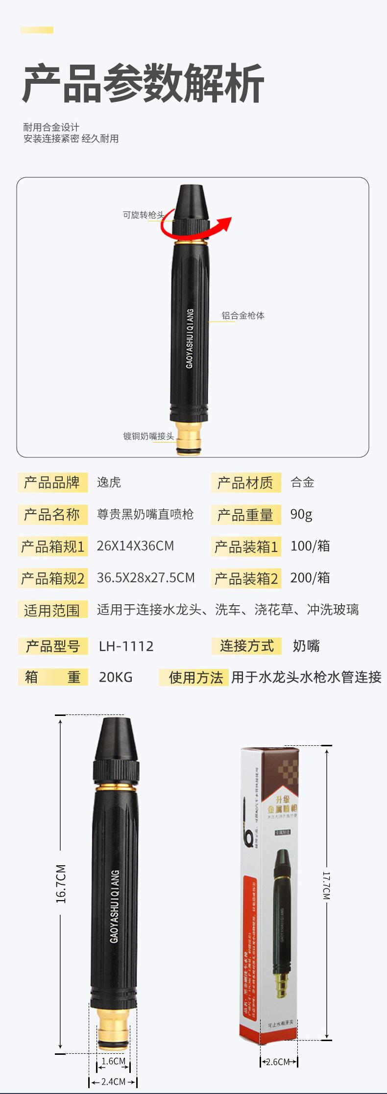 Bico de liga de fábrica banhado a cobre tipo bico de spray direto para lavagem de carro Jardim doméstico Chuveiro preto de pistola de água de alta pressão