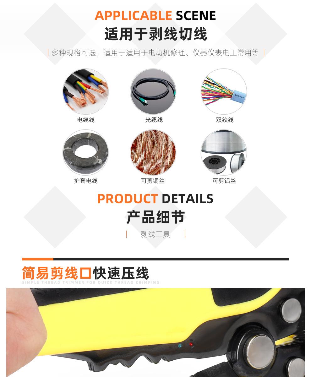 Descascador de fios Multifuncional Eletricista Ferramenta de decapagem de fios Alicate de corte de fio Tesoura de puxar fio Decapagem, decapagem e prensagem Extrator de fio