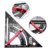 O transferidor é feito de aço inoxidável 2CR13 com dureza HRC30 ou superior, um arco de escala semicircular tridimensional, uma escala de 0-180 graus, uma leitura de 1, um mostrador polido, antirreflexo, com parafusos de fixação, porcas galvanizadas, ajuste de alta precisão e laser. A escala métrica do transferidor pode realizar medições precisas de 0 a 180 graus. Após a medição do ângulo, a linha de referência é alinhada, com precisão de 1 grau e precisão de correção de ±0,2 grau. É um produto utilizado por instaladores e carpinteiros para medição, desenho e design.