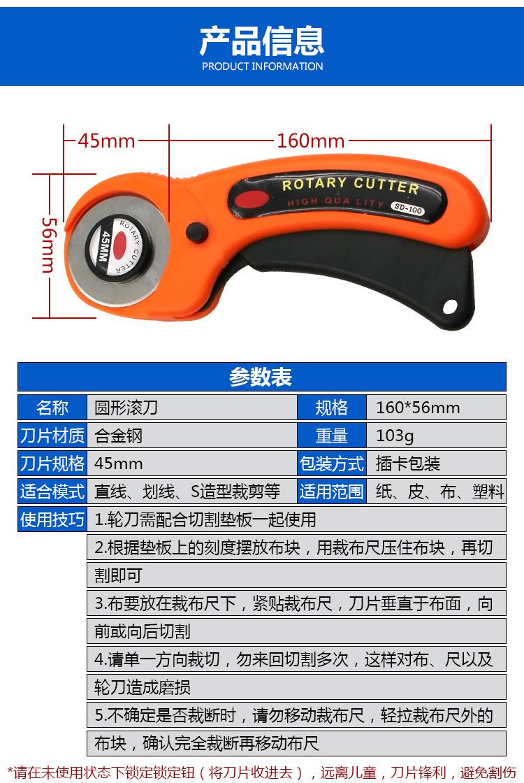Patchwork Hob Roller Knife 45mm Faca de Corte de Couro com Anel de Borracha Peça Lâmina de Corte Cabo Rolo