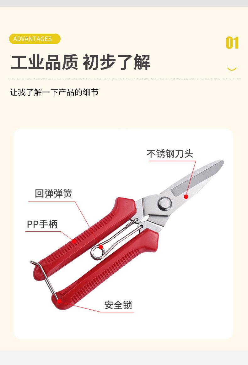 Tesouras de poda de bonsai doméstico Tesouras de jardim de fornecimento direto da fábrica Tesouras de poda serrilhadas Tesouras de jardinagem de cabeça reta de aço inoxidável para colheita de frutas