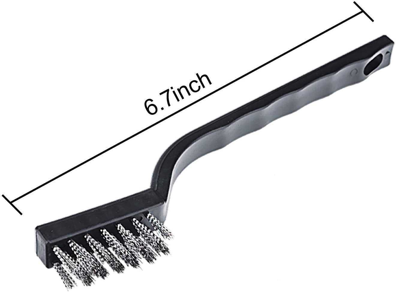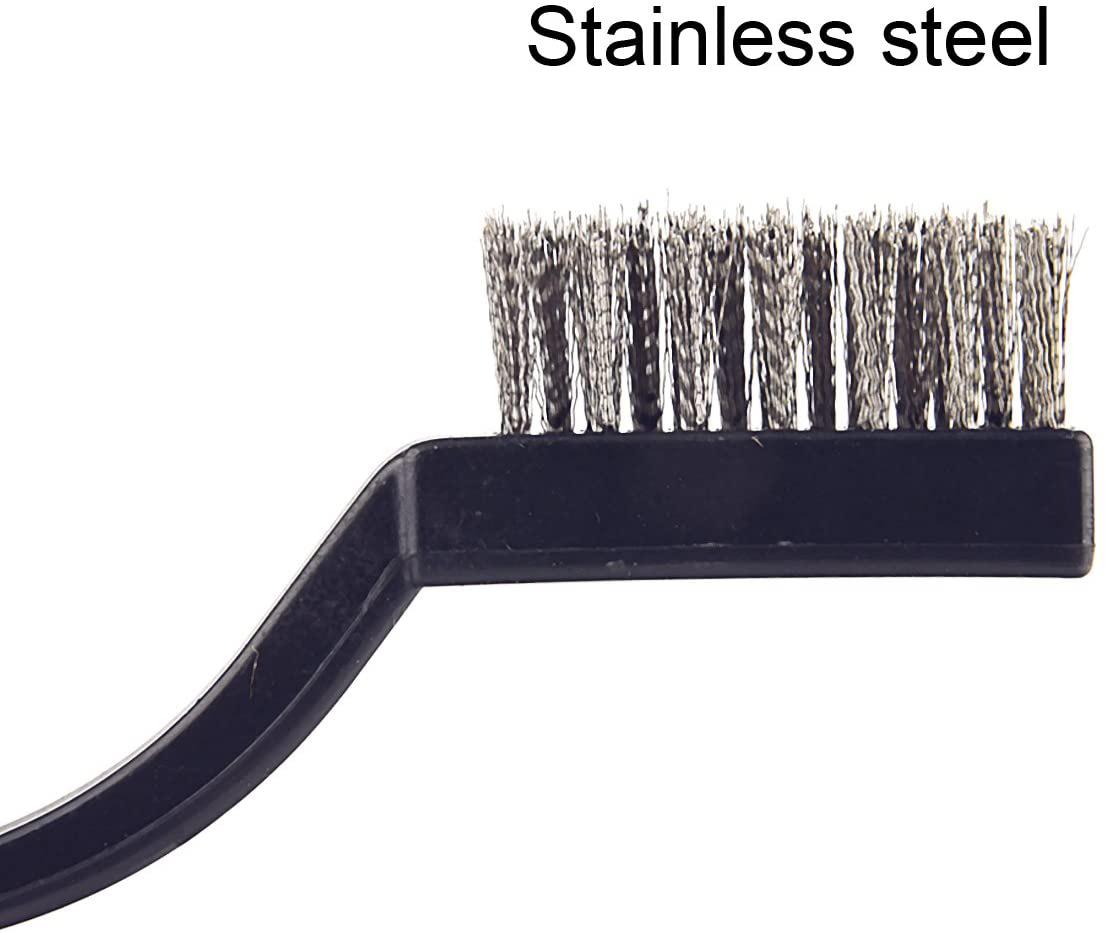 Conjunto de 20 peças de mini escovas de cerdas de aço inoxidável com cabo para limpeza de manchas de escória de soldagem e ferrugem