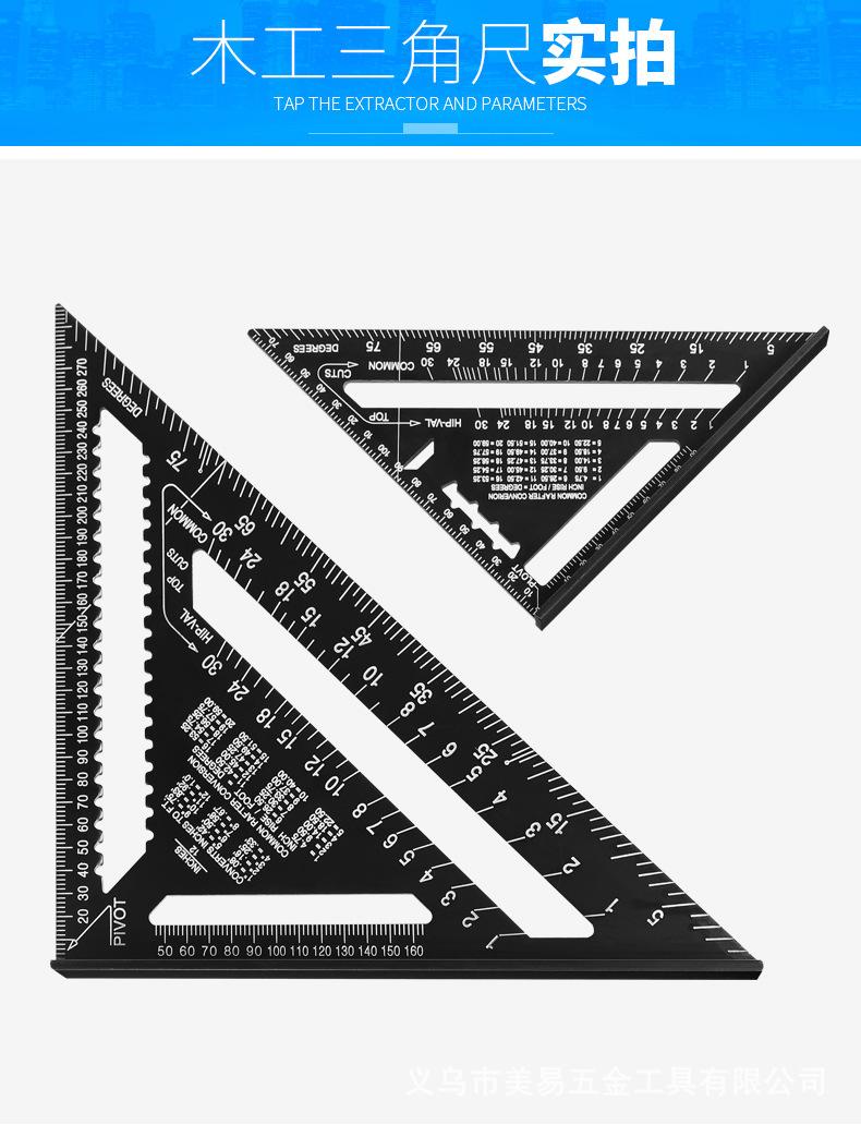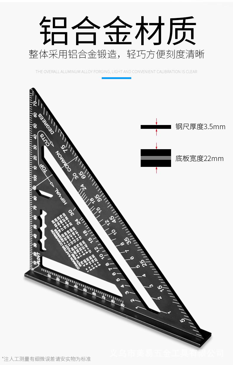 7 inch aluminum alloy metric triangle ruler, 12 inch aluminum alloy metric triangle ruler, Imperial metric blu...