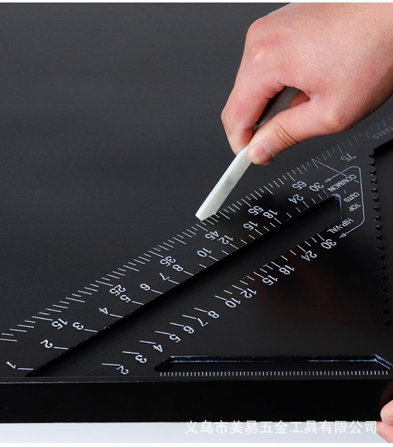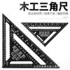 Régua triangular de 7 polegadas e 12 polegadas métricas liga de alumínio 90 graus quadrado preto Régua de triângulo de medição para carpintaria