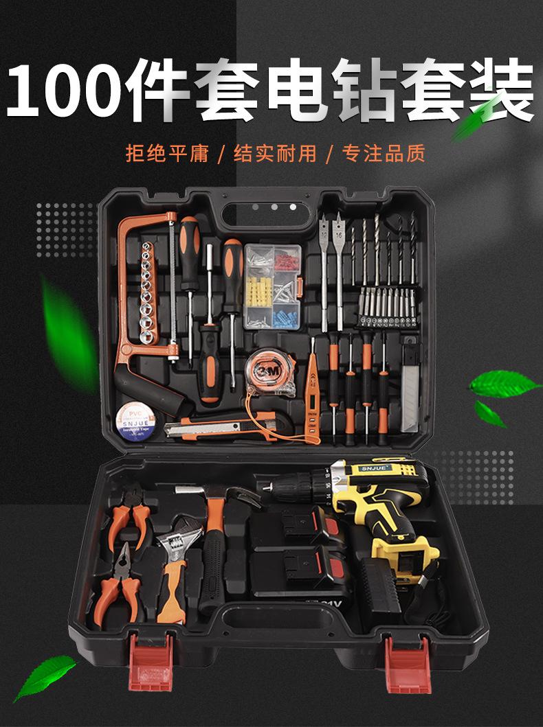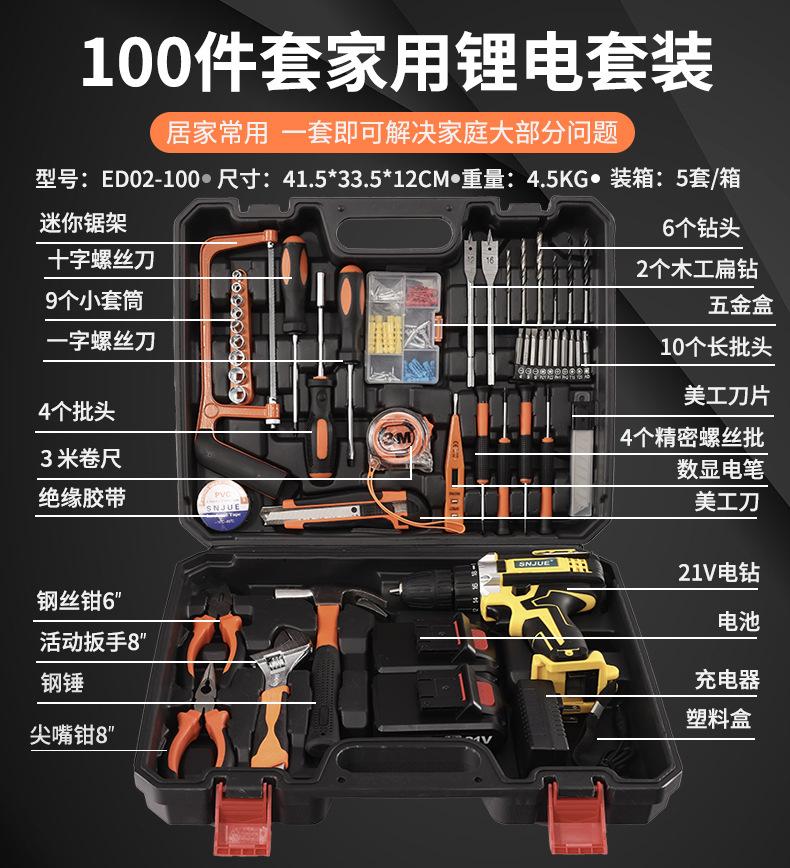21v electric drill plastic box 100-piece set ed03-100-2 (two batteries and one charger)