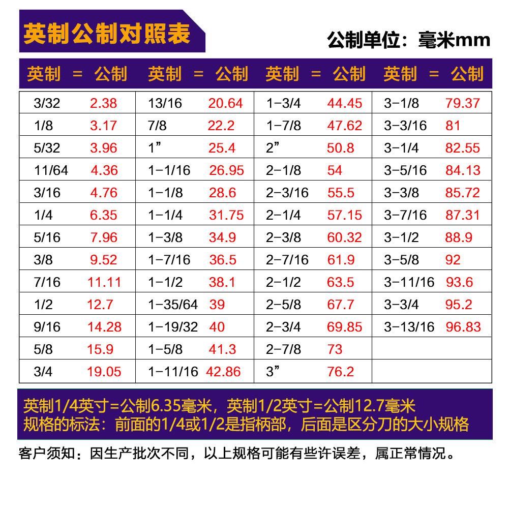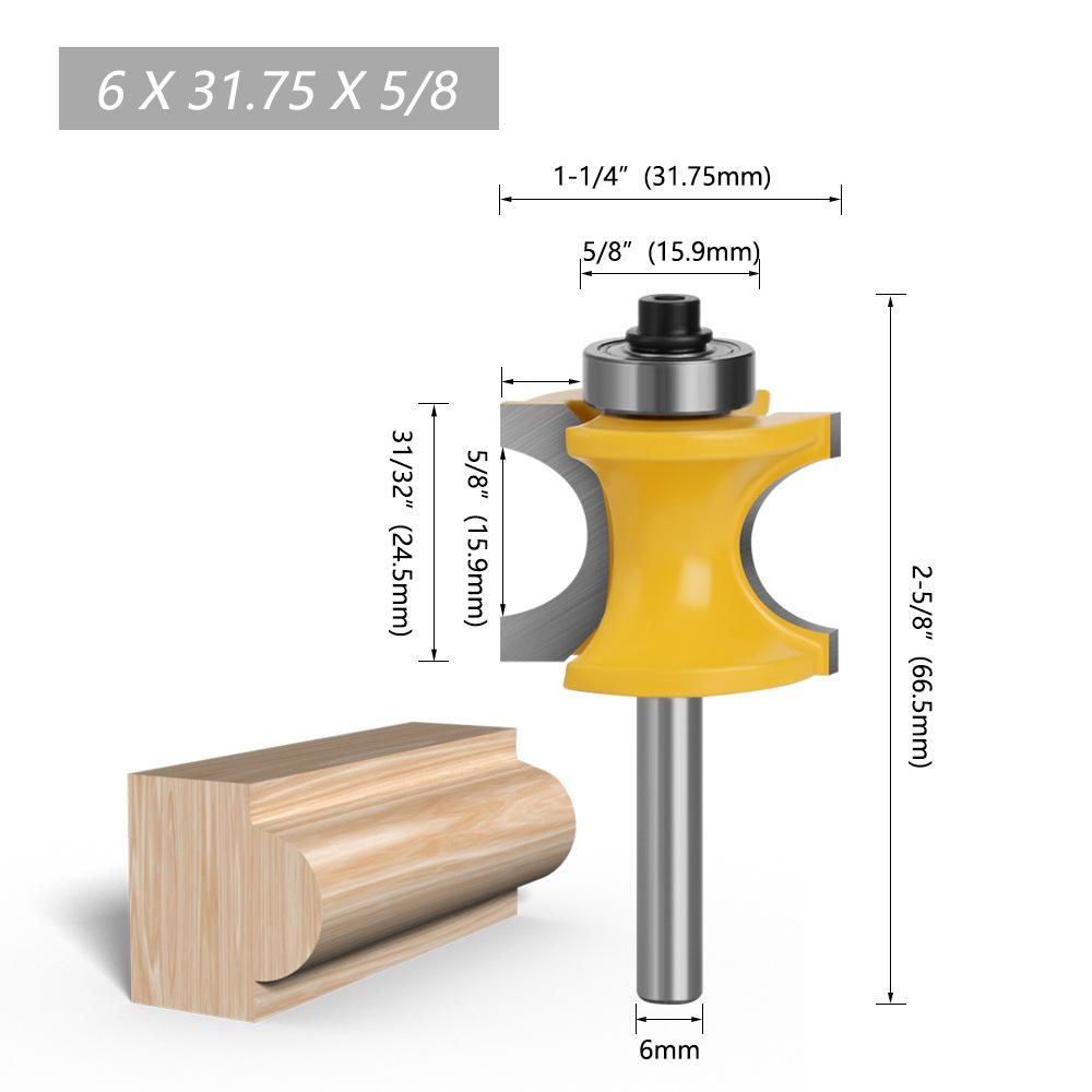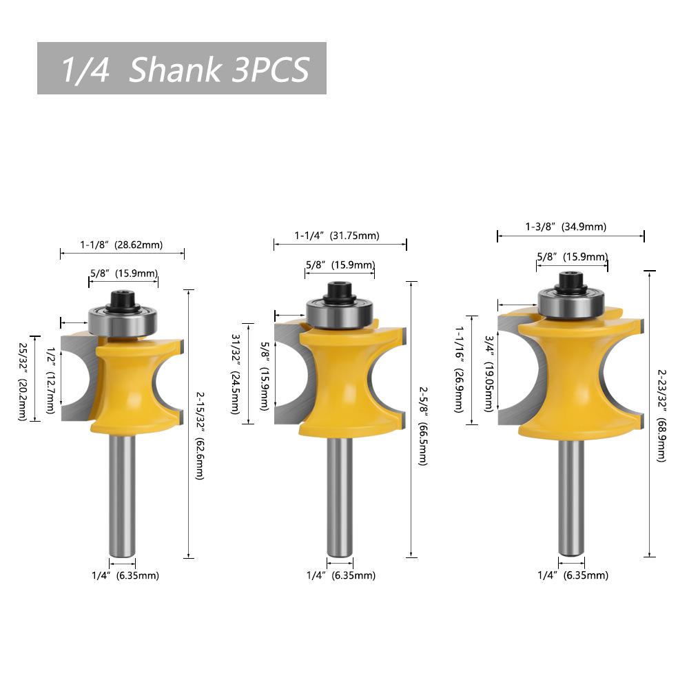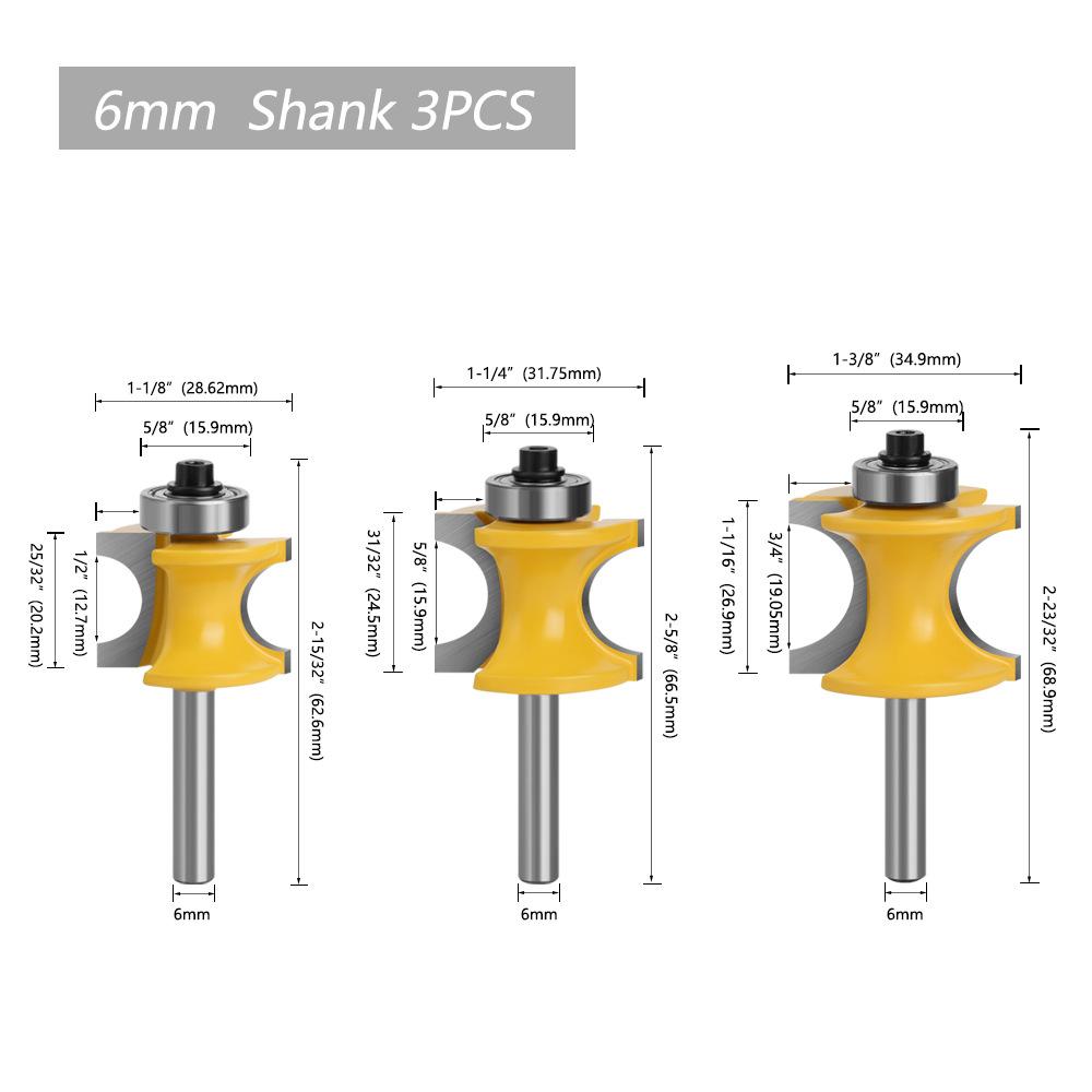As alças do cortador de madeira incluem: 3 mm, 6 mm, 1/4 "(6,35 mm), 8 mm, 12 mm, 1/2" (12,7 mm)