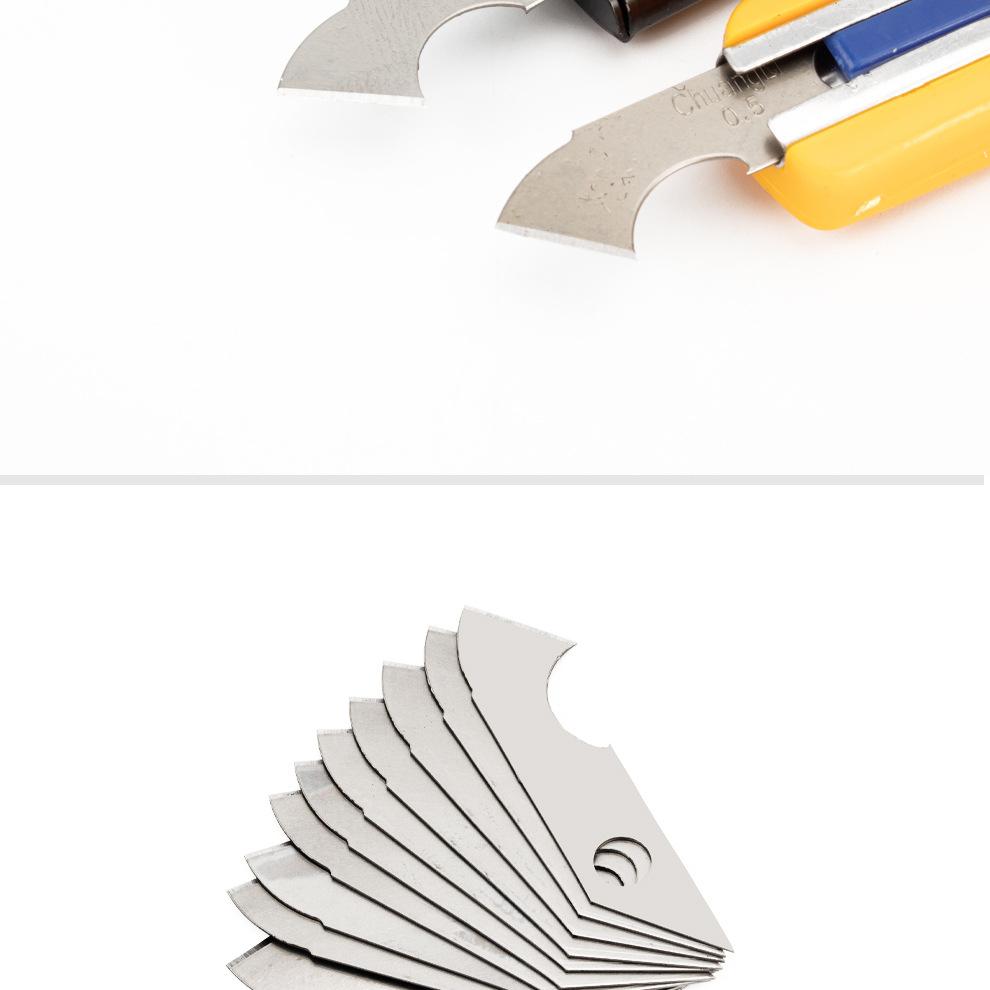 A box of blades (10 pieces), 3 boxes of blades, A4 backing plate, A3 backing plate, Yellow Black hook knife, Y...