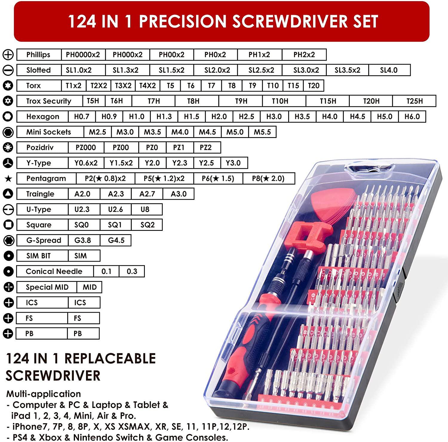 Conjunto de chaves de fenda multifuncionais, chave de fenda combinada 124 em 1, chave de fenda multifuncional, conjunto de chaves de fenda