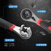 A superfície é cromada brilhante, cabo bicolor vermelho e preto, tamanho do lado oposto 6,35-22,2 mm, mandíbulas, catraca 40Cr, parafuso 50CRv, adequado para parafusos métricos 6-22 ou imperiais 1/4--7/8, engrenagens, etc.