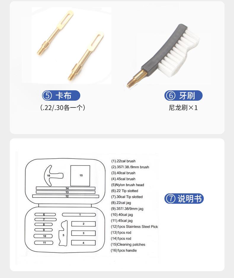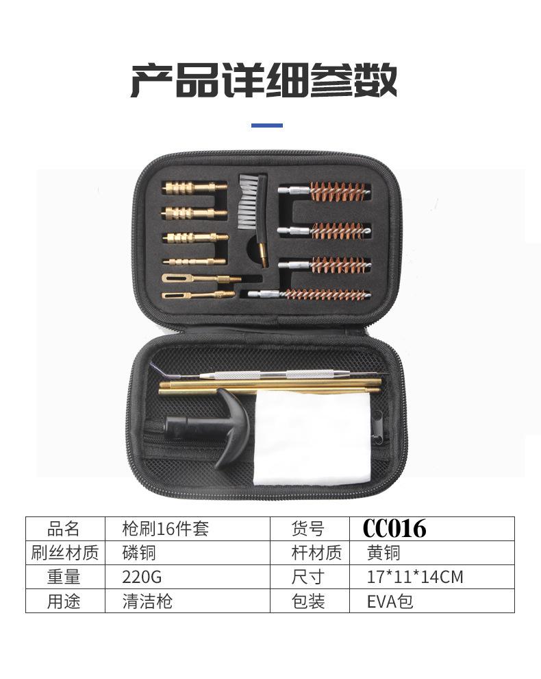 Conjunto de 16 peças de ferramentas de limpeza transfronteiriças da Amazon para limpeza de arma de limpeza escova de arma de acessórios de limpeza de hardware escova de arame