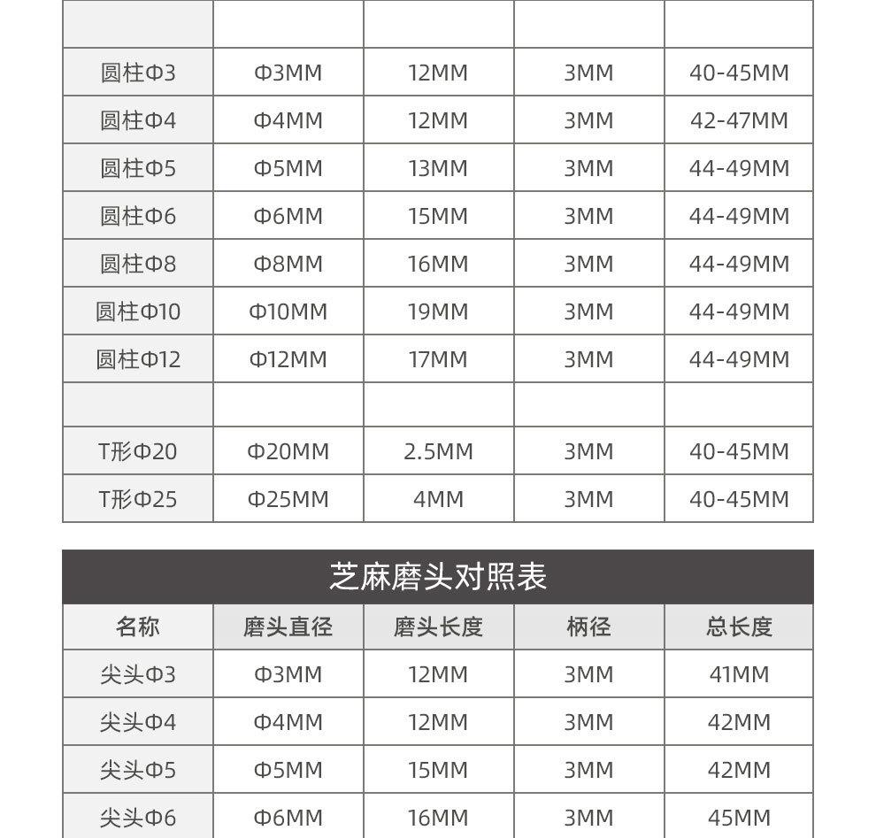 | Cabeça de moagem de gergelim | ponta pontiagudaΦ3 | 43mm | 13mm |
