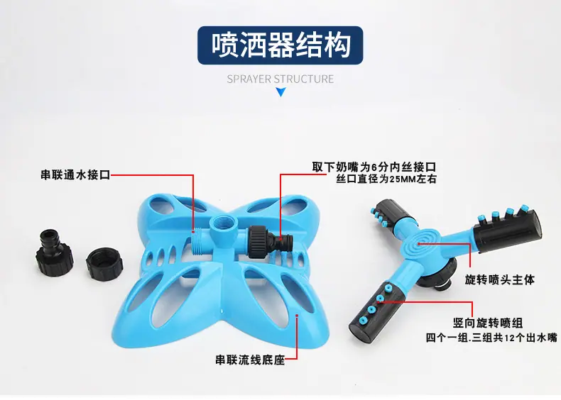 Fornecedor Fabricante Aspersor Rotativo de Três Braços Tipo Borboleta Totalmente Automático Bico Aspersor Rotativo Série Conectada Irrigação de Viveiro