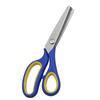 Tesoura de Alfaiate - Azul e Amarelo - Dentes Triangulares 5mm (Caixa de Papel) Imagem da Embalagem: