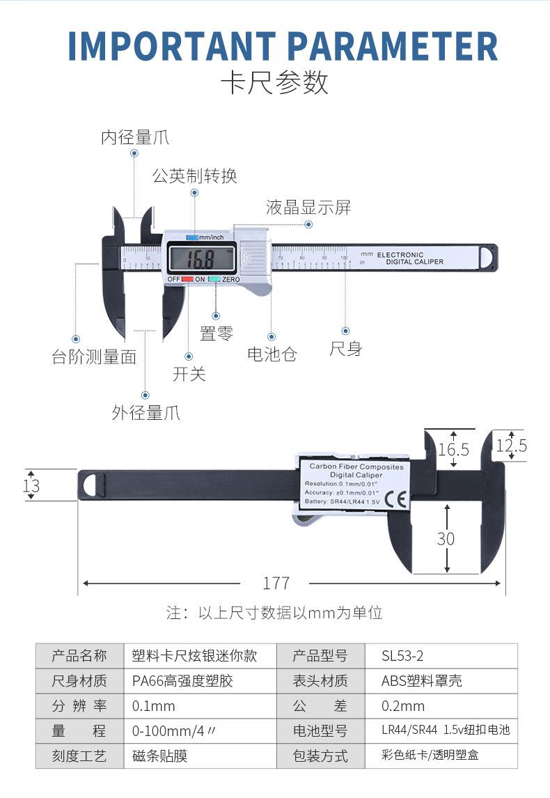 Paquímetro Digital Eletrônico Syntek 0-100-150mm Todo Digital Plástico Pequeno Mini Série Prata