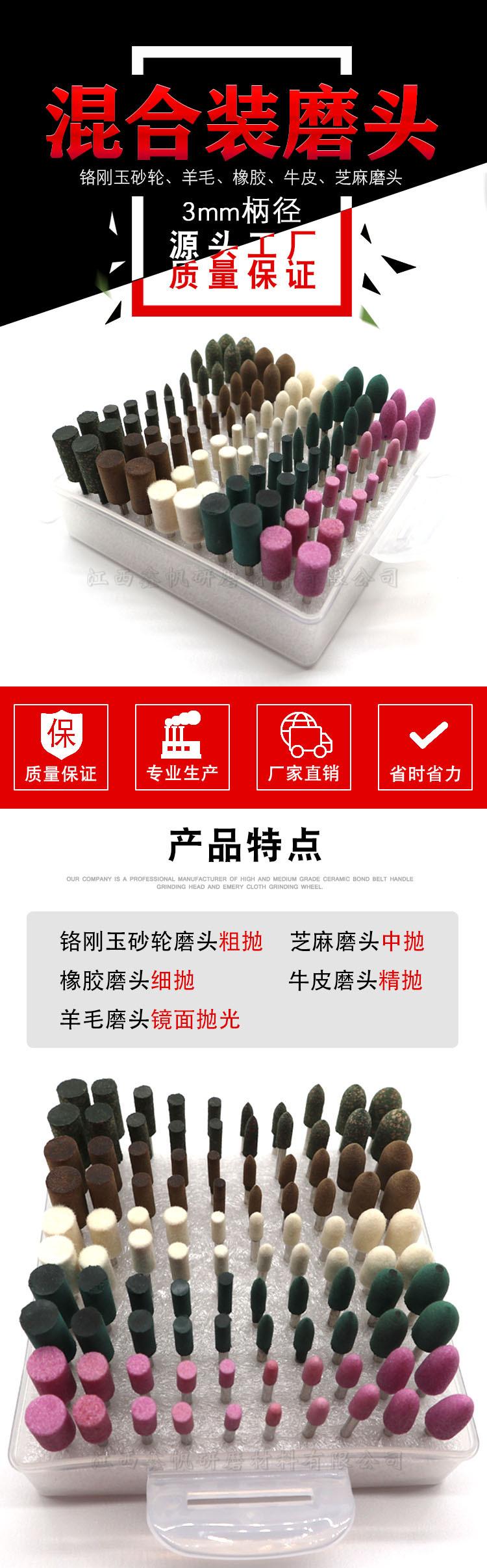 [Fabricante] Conjunto misto 100 5 tipos de material rebolo de borracha de lã de gergelim cabeça de lixamento de couro