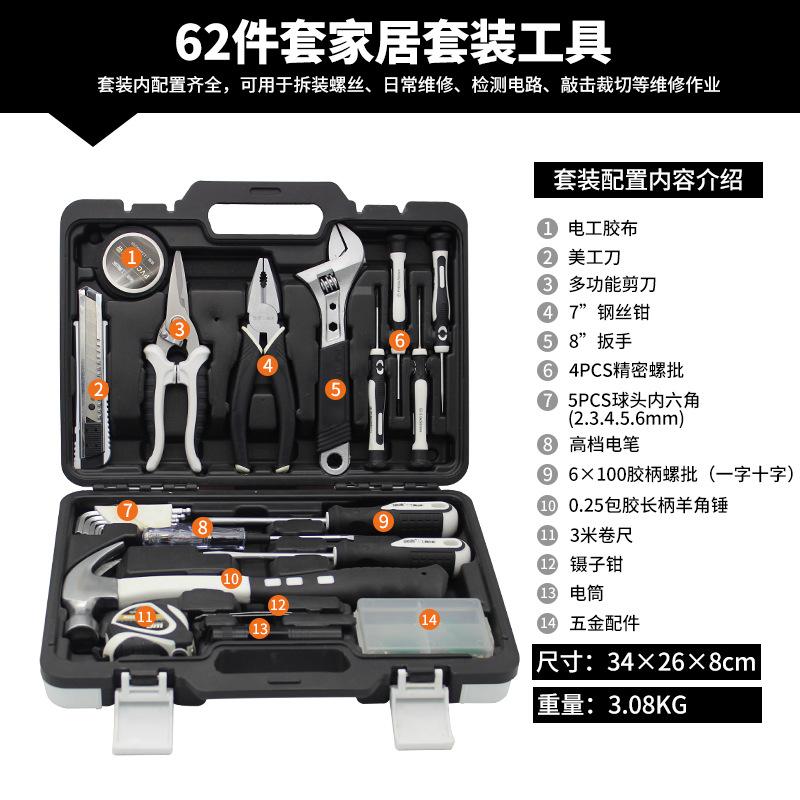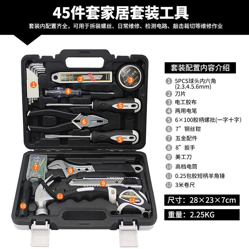 45-piece household toolbox suit [model 101045]], 55 household tools suit [model 101055]], 62 household tools s...