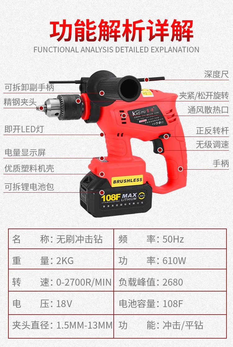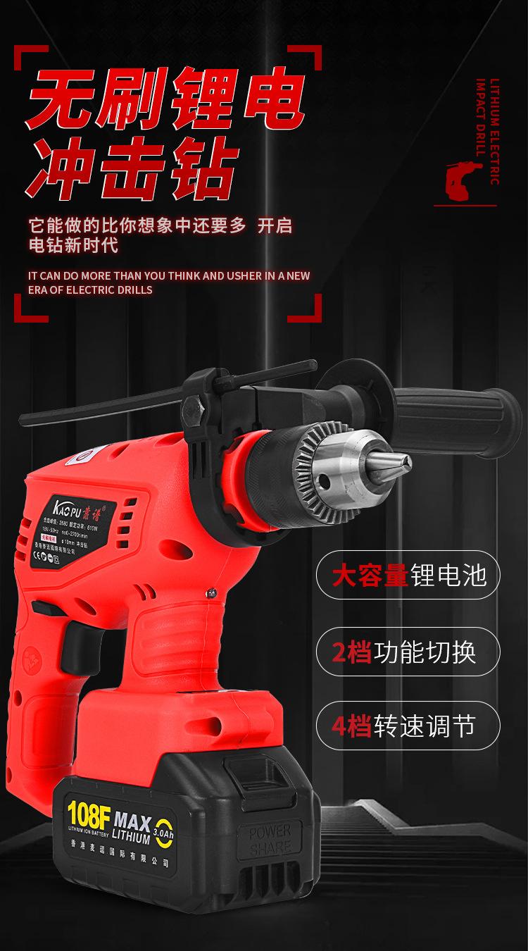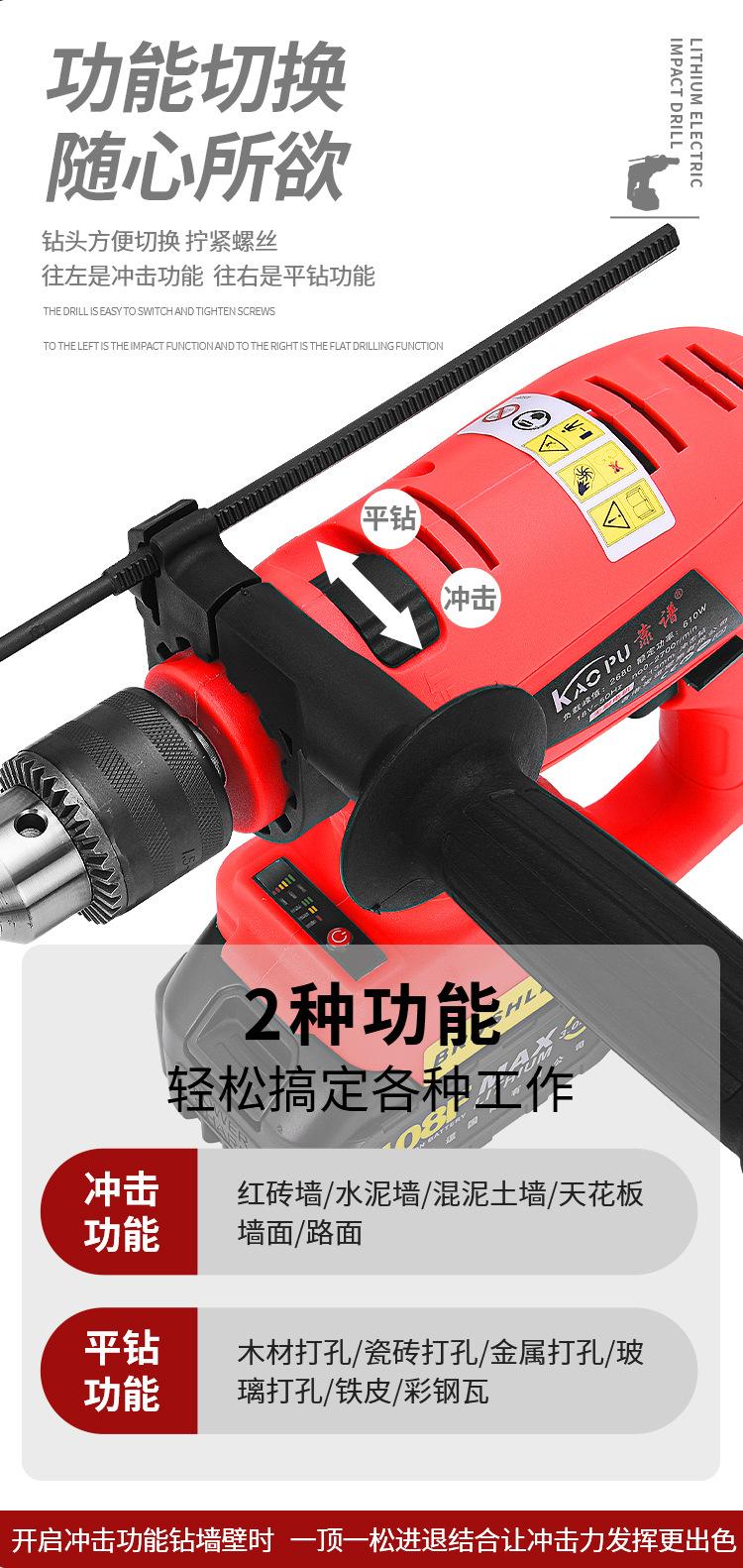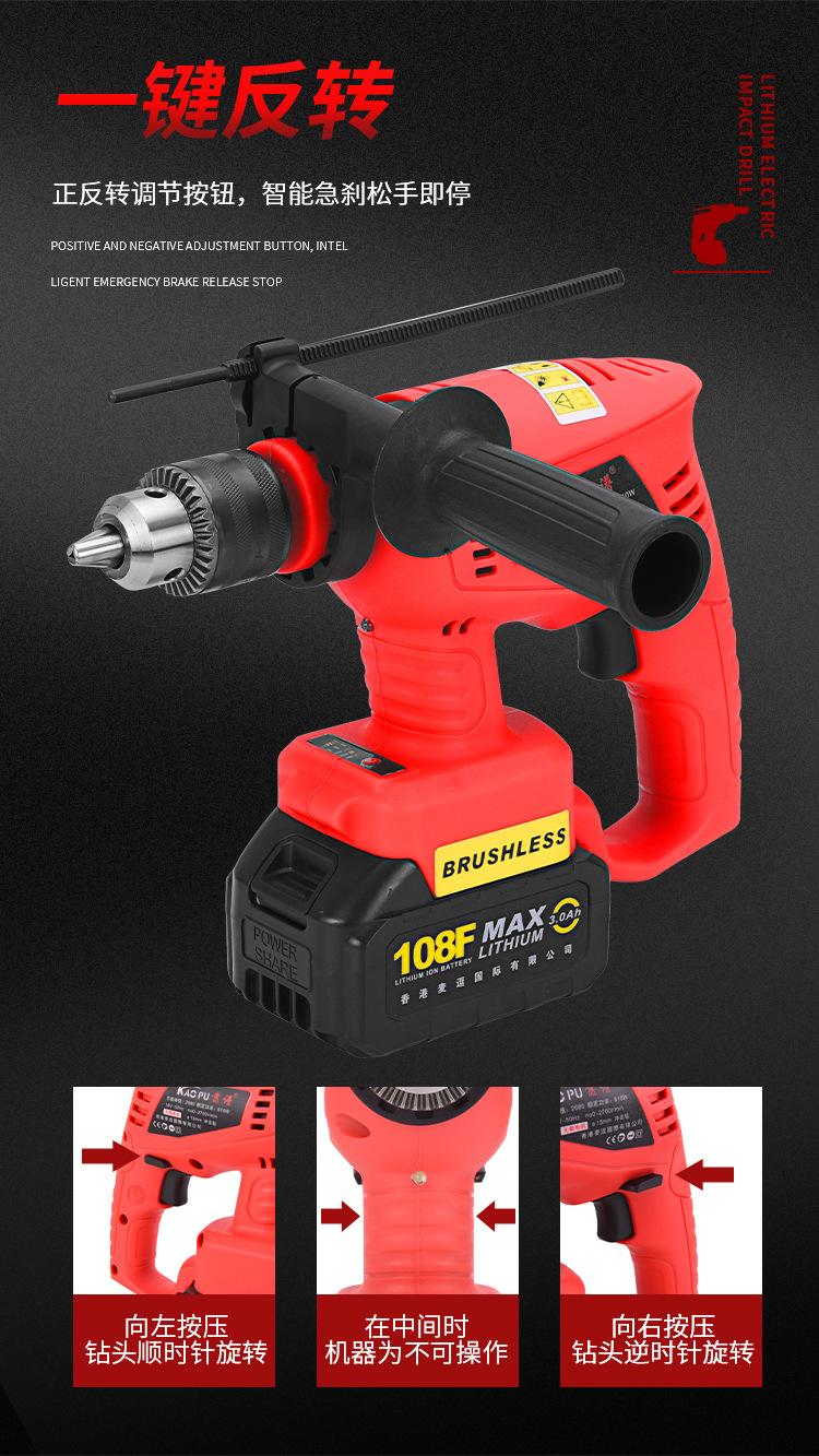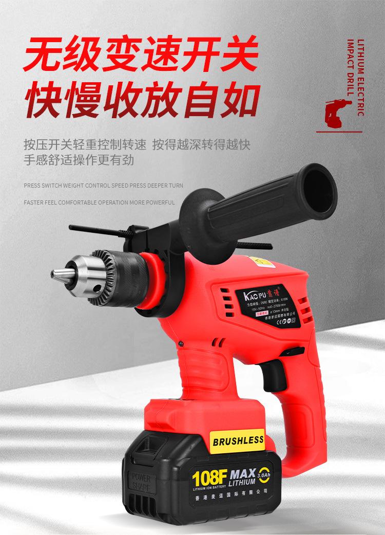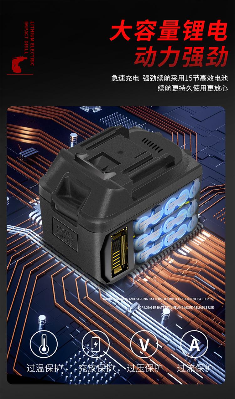 Ferramentas de hardware de bateria de lítio sem fio 1,5-13 mm furadeira de impacto furadeira plana furadeira de pistola multifuncional doméstica fábrica