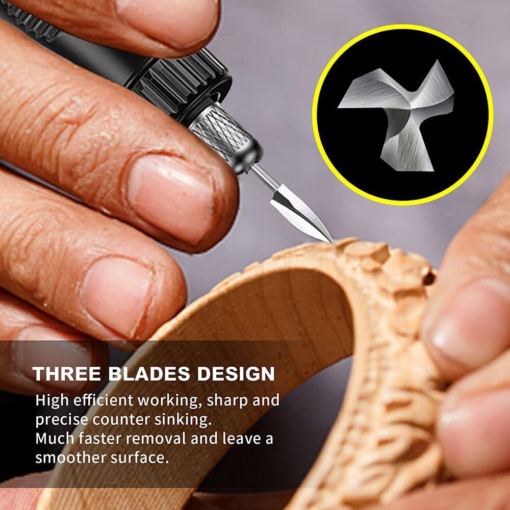 Cortador de fresagem de escultura em madeira transfronteiriça da Amazon faca de escultura em madeira cabeça de moagem de três lâminas embrião ferramenta de moagem faca pontiaguda de aço branco