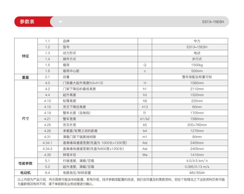Roda off-road exterior elétrica do caminhão de pálete ES13-15ESH3 do empilhador da empilhadeira de Zhongli 1,5 toneladas engrossadas