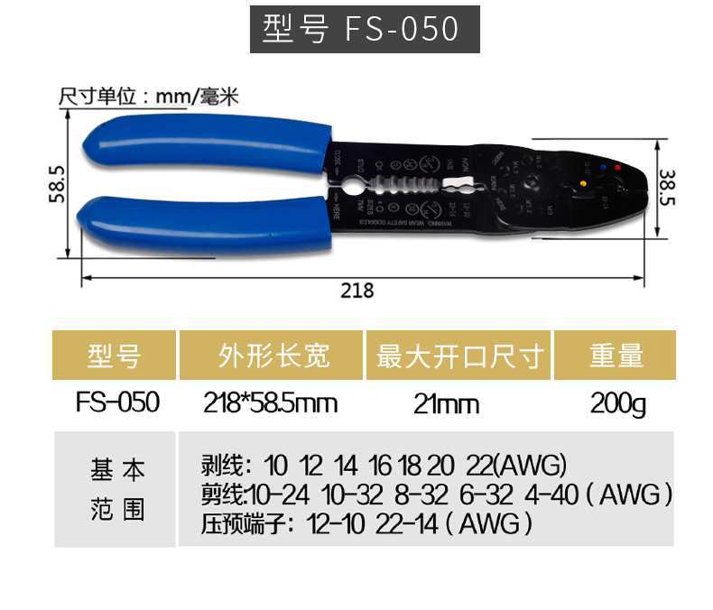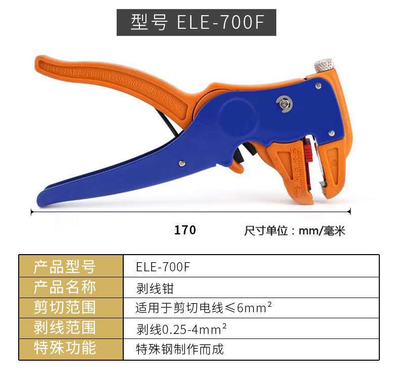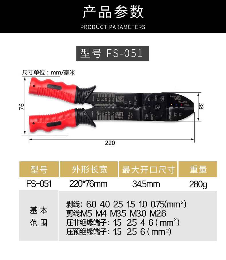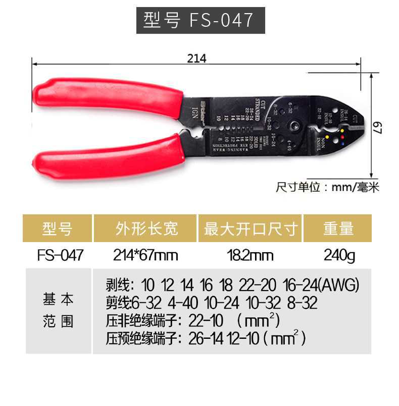 Wire stripping pliers ET003401, HS-1040(6-16 mm²), HS-1041(0.9-6 mm²), HS-1041A(0.6-2.6 mm²), FS-051 stripper ...