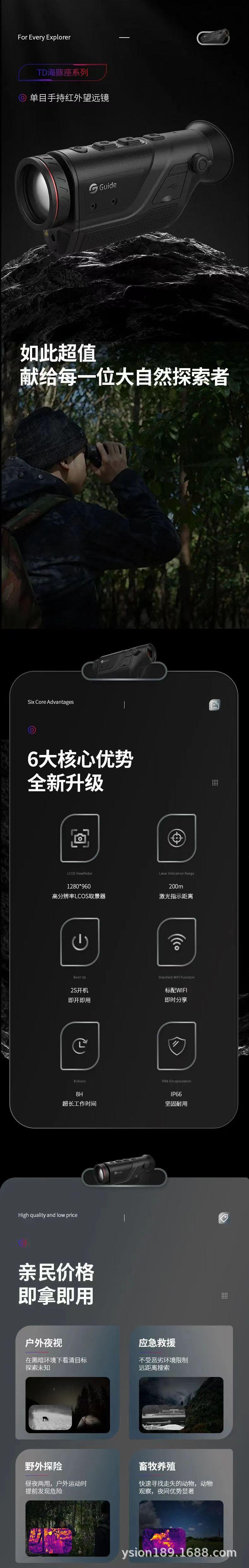Os produtos da série TD Dolphin seguem o design tradicional de equipamento óptico. É um telescópio infravermelho monocular portátil que é leve, portátil, fácil de operar e tem uma ampla gama de aplicações. Este telescópio infravermelho tem imagens claras e visualização confortável. É adequado para observação noturna de médio e curto alcance e é um equipamento ideal para visão noturna ao ar livre.