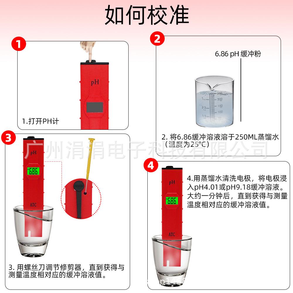 6. Após o uso, desligue o PH, limpe o eletrodo com água destilada e cubra-o com a tampa protetora.