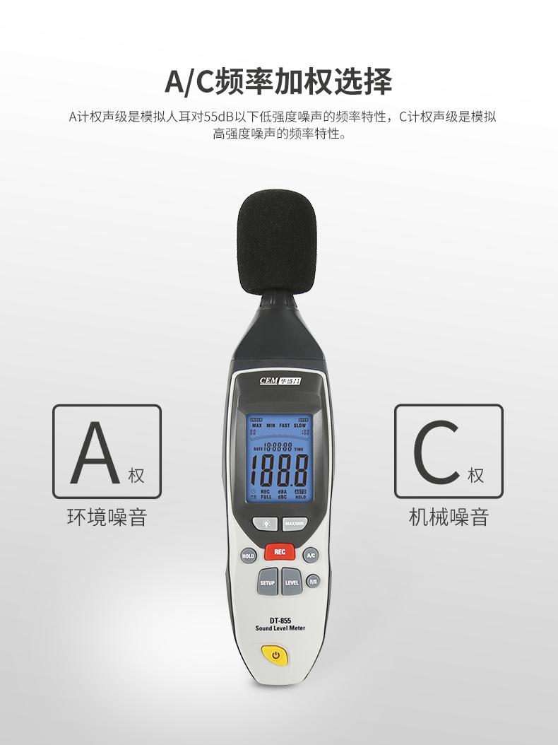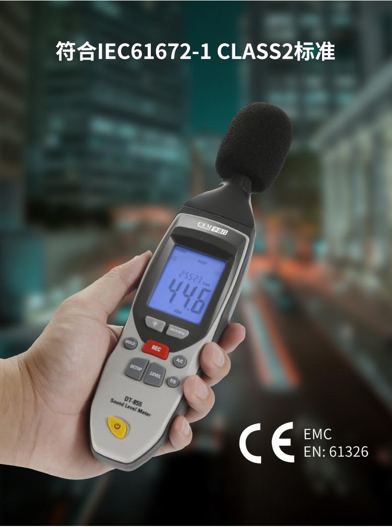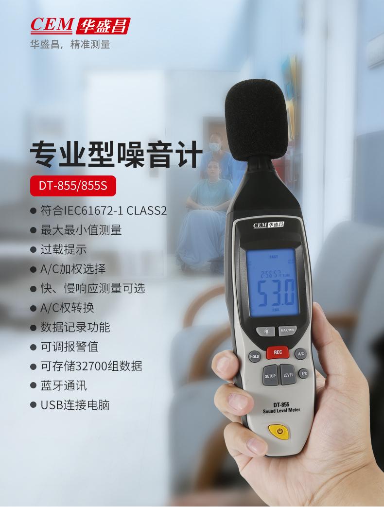 CEM Xinchang detector de ruído de alta precisão medidor de nível de som gravador de teste de decibéis de volume sonoro DT-855