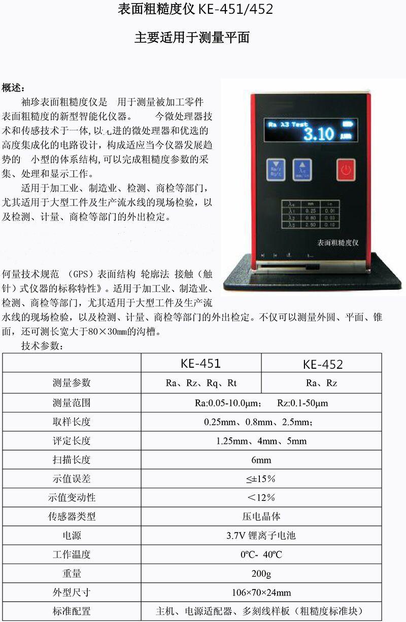 Medidor de rugosidade de Xangai KE-451 medidor de rugosidade portátil instrumento de medição de rugosidade