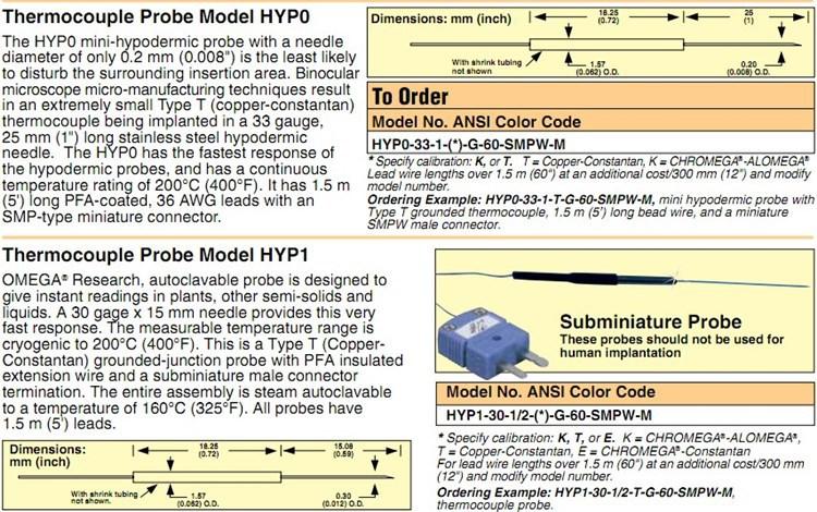 Sonda termopar tipo K americana Omega HYP0-33-1-KG-60-SMPW-M