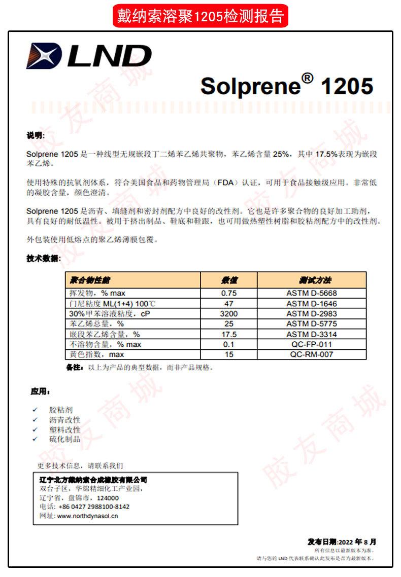 Solprene 1205 danaso solução polibutadieno resina termoplástica asfalto modificador plástico no norte de Liaoning