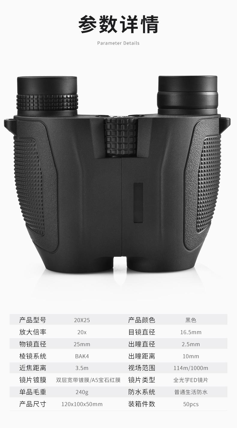 Pequeno Paul binóculos 20X25 HD de alta potência esportes ao ar livre viagem portátil telescópio de bolso anti-Paul