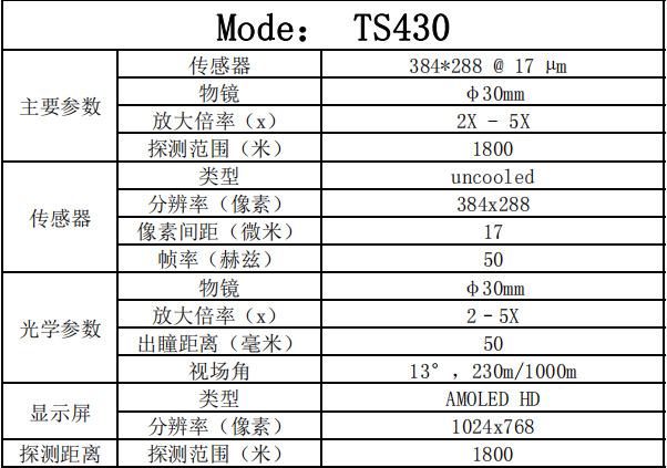Telescópio de Visão Noturna Infravermelho Ts-430 Imagem Térmica Rastreamento e Busca de Pontos Quentes Tudo-Em-Um Lente Grande de 30mm Longa Distância