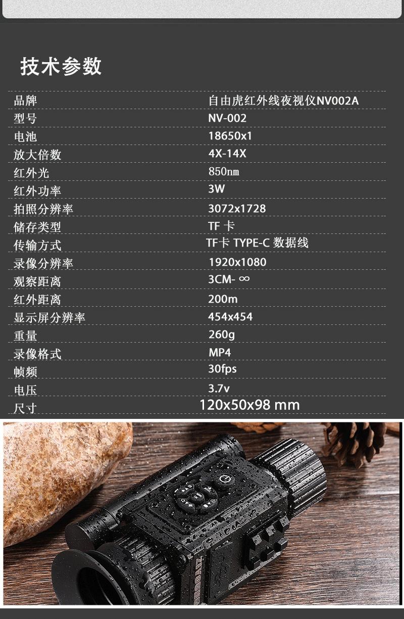 Dispositivo de Visão Noturna Infravermelho Tigre Gratuito Nv002A Digital de Alta Definição para Exterior Busca e Resgate Segurança Telescópio Digital Cruz
