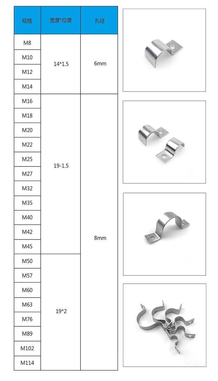 Cartão de sela de aço inoxidável 304 espessado braçadeira de tubo lateral único Omka Saddle Card Clipe fixo em forma de U braçadeira de tubo de água