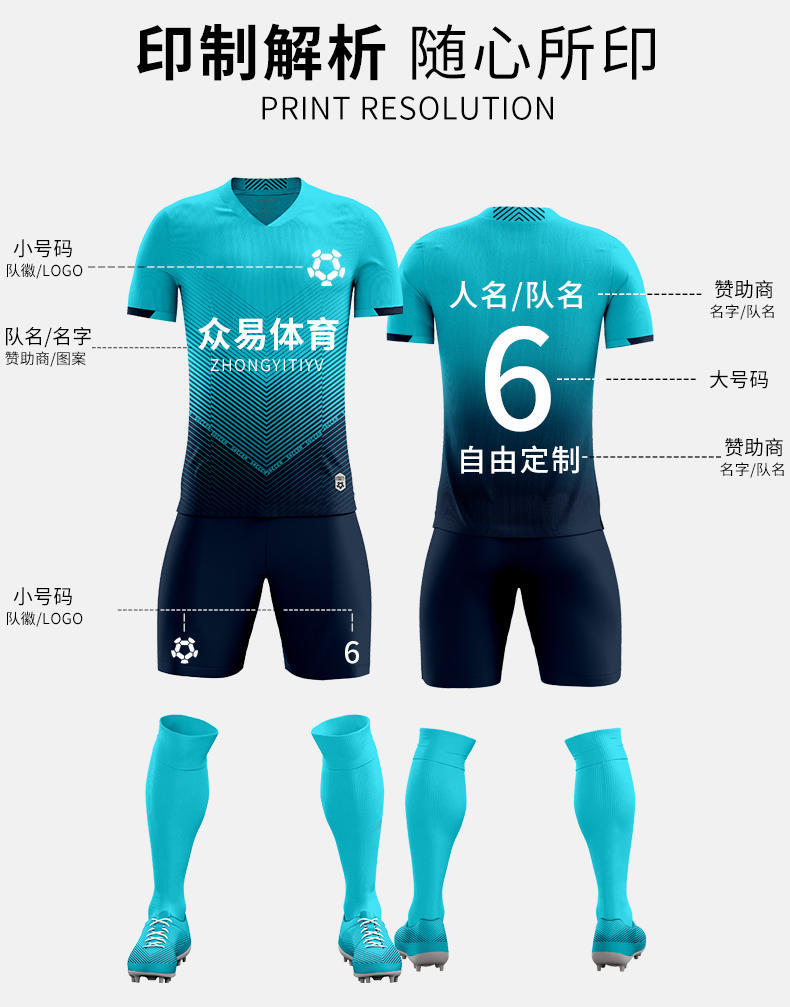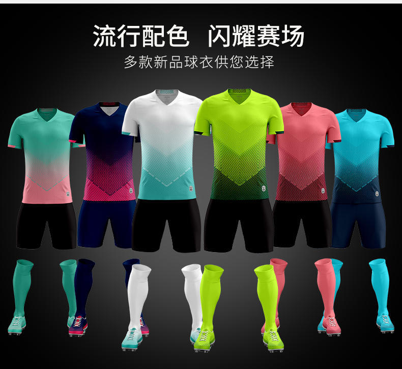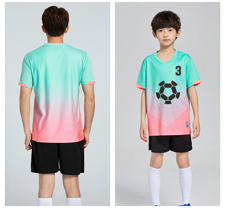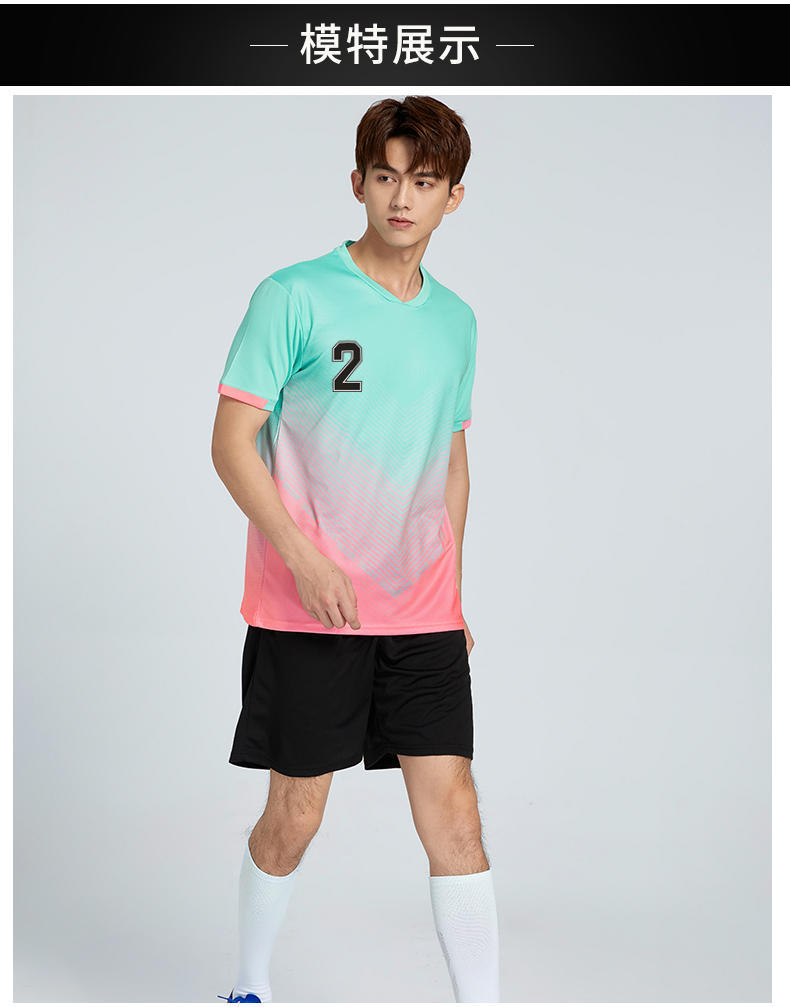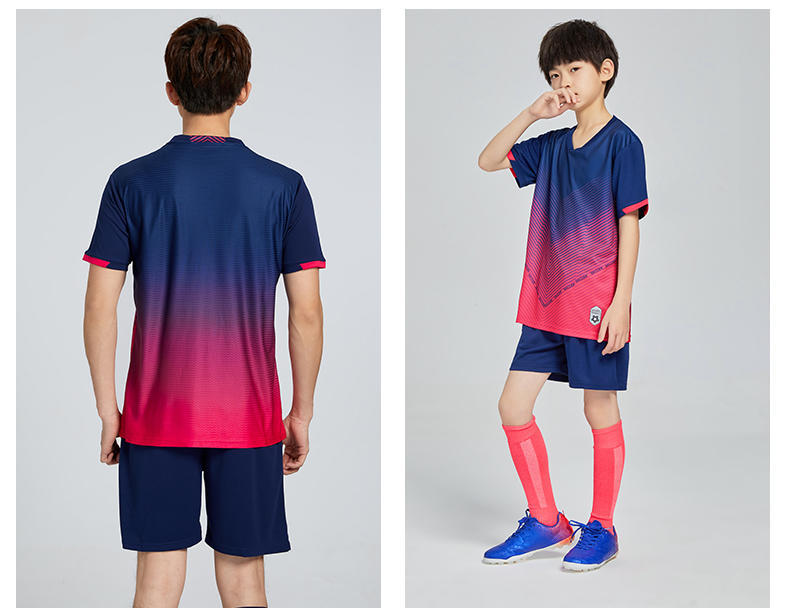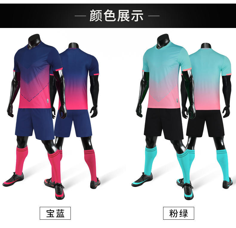 Terno de futebol de manga curta gradiente de cor de treinamento terno de jogo atacado compra em grupo número de impressão imprimível D8832#