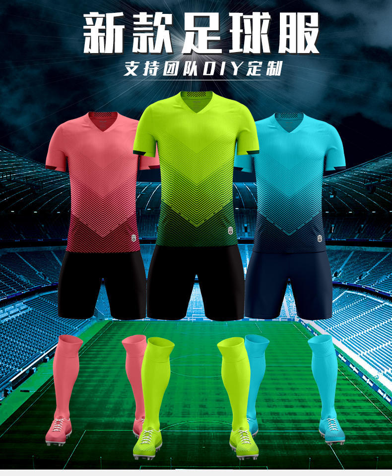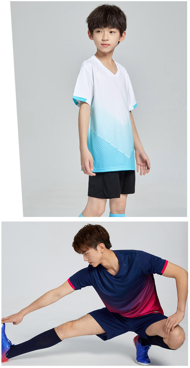 Compre Terno de futebol de manga curta gradiente de cor de treinamento terno de jogo atacado compra em grupo número de impressão imprimível D8832# no atacado no Joom.pro