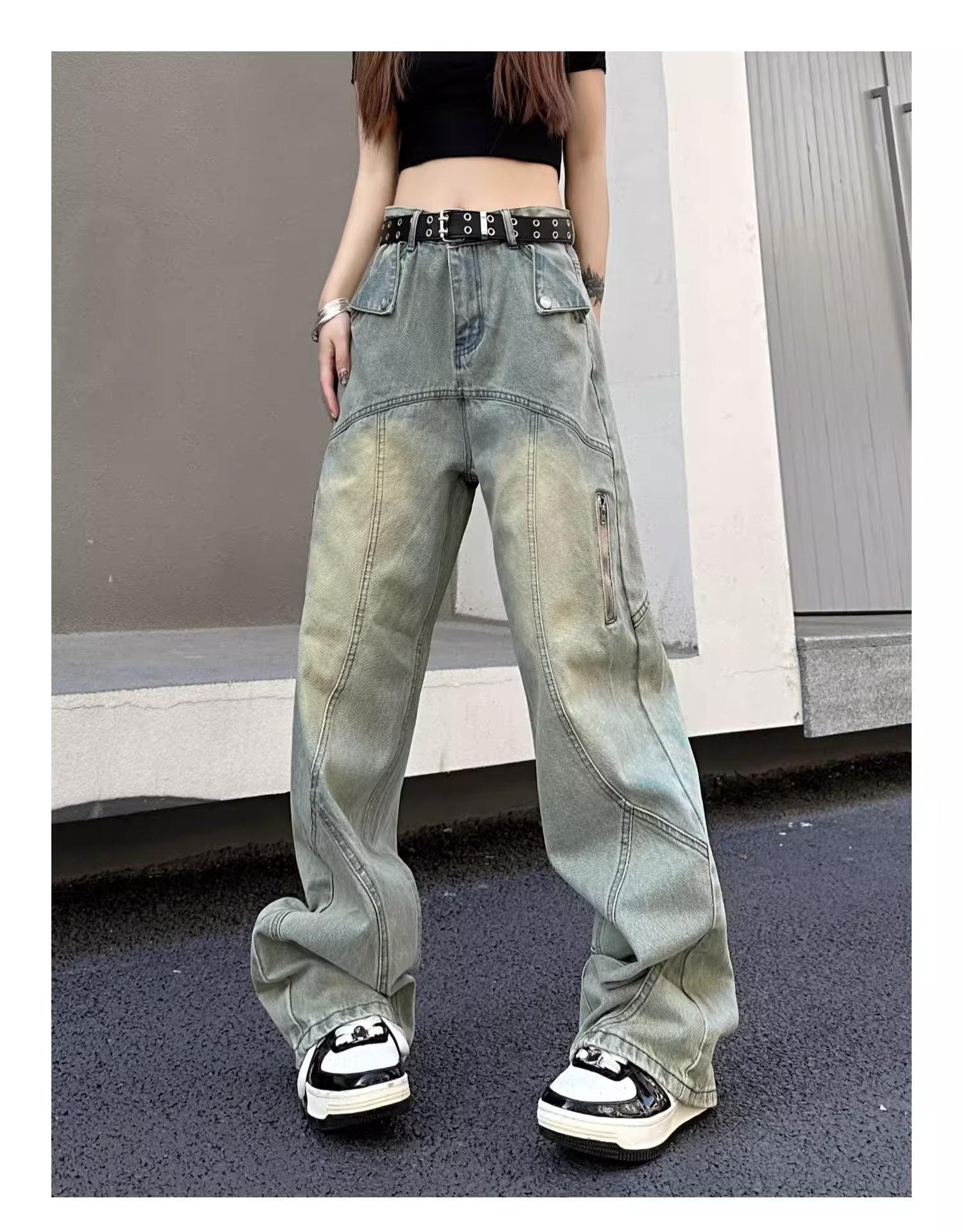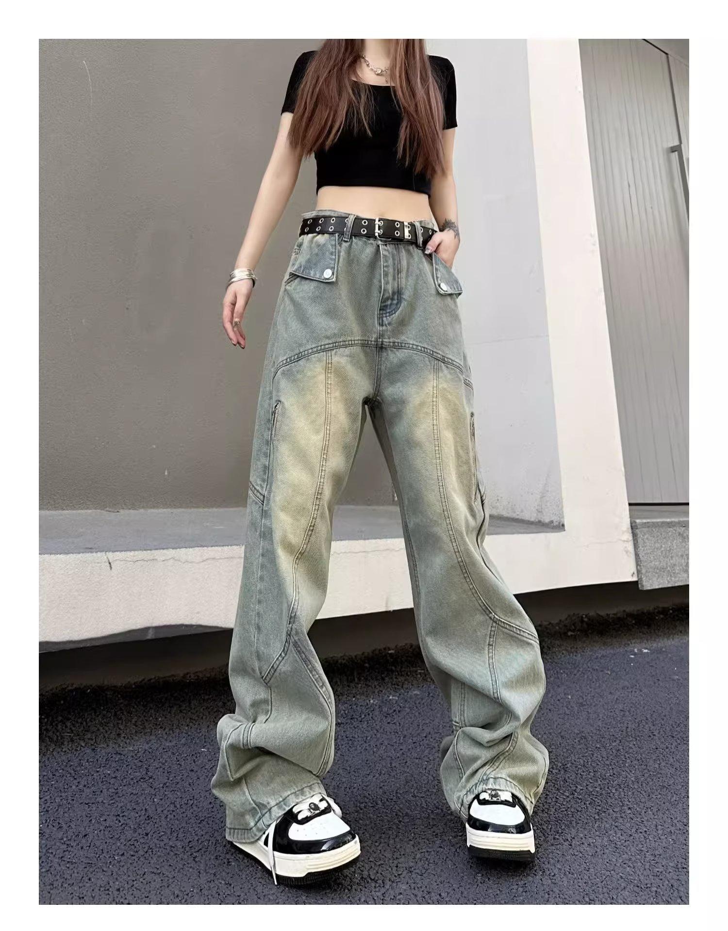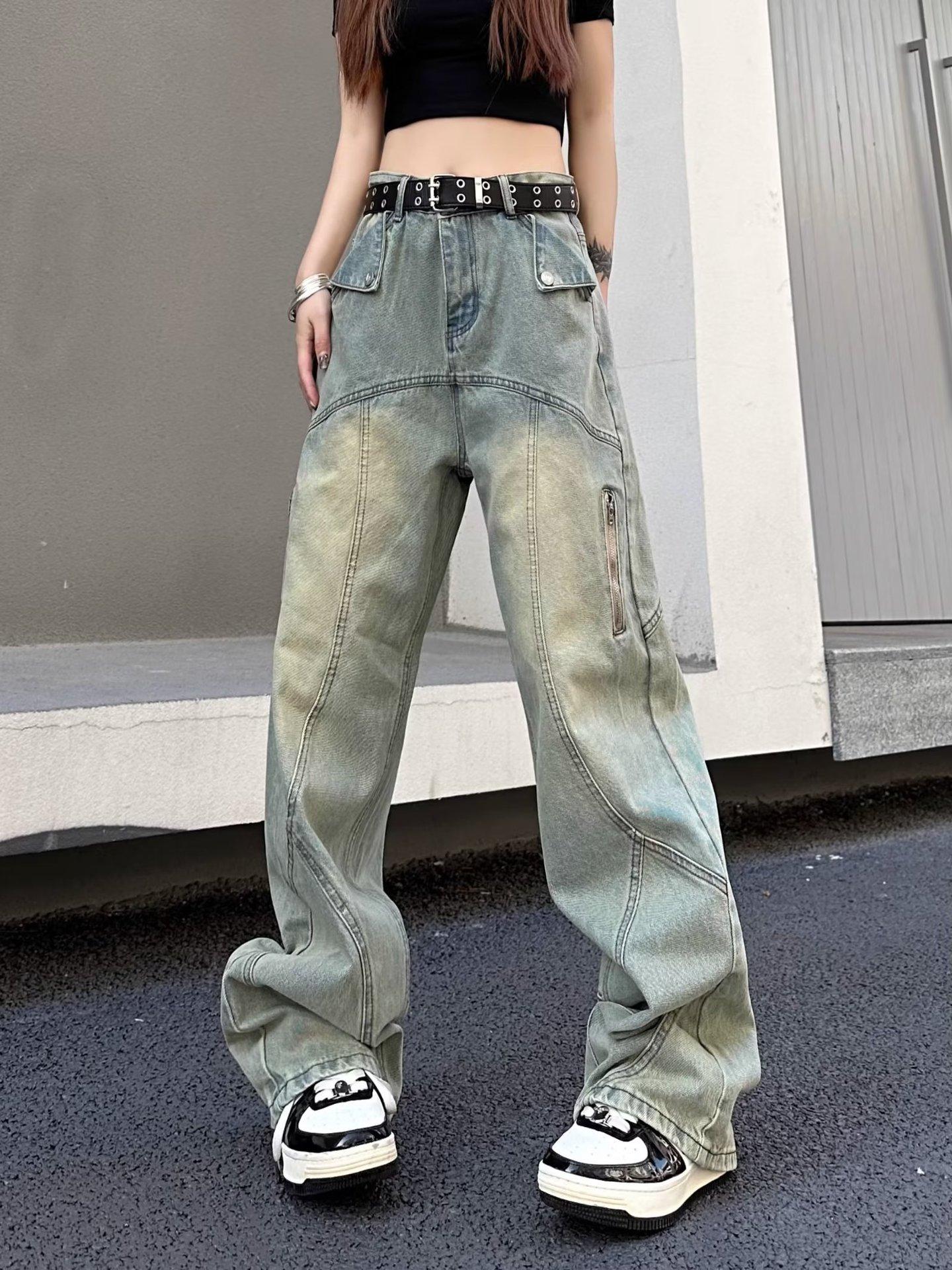 Compre Calça jeans feminina estilo americano com design retrô e pernas largas, cintura alta, estilo hip hop, reta e solta no atacado no Joom.pro