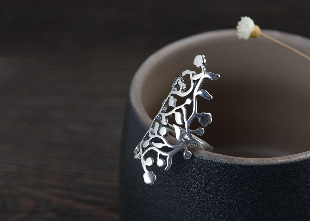 Compre Golden Deer King tailandês anel de prata atacado S925 prata vintage artesanato feminino oco anel aberto anel de dedo indicador no atacado no Joom.pro