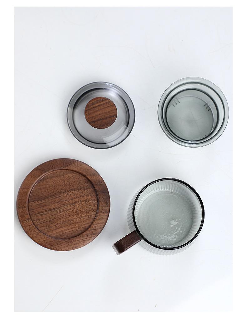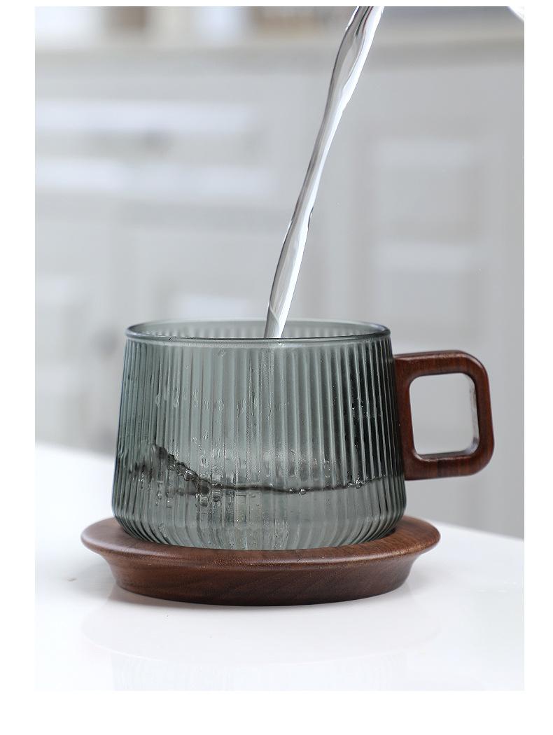 Glass-engraved vertical pattern cup (transparent black) + coaster