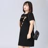 Primavera e verão 2019 novo vestido de lantejoulas feminino com busto 140 e saia camiseta de manga curta e 300 kg