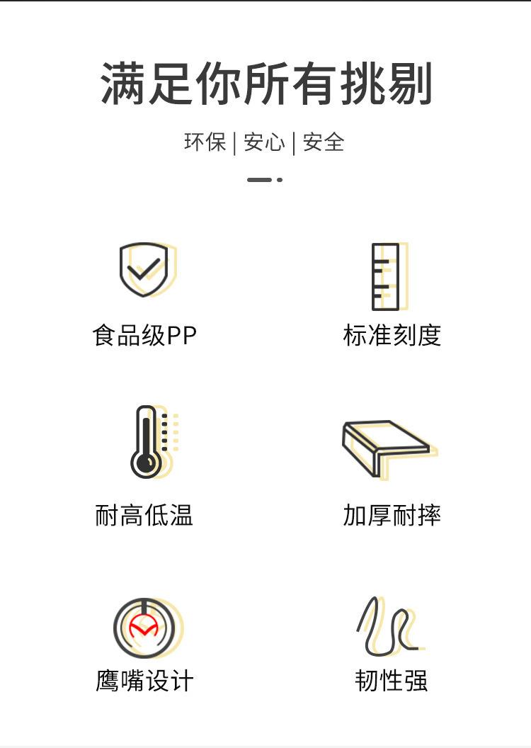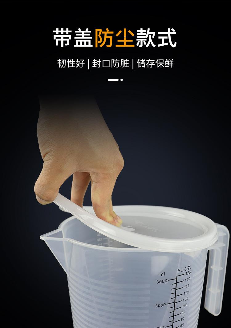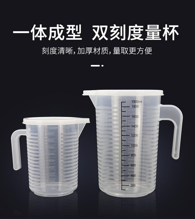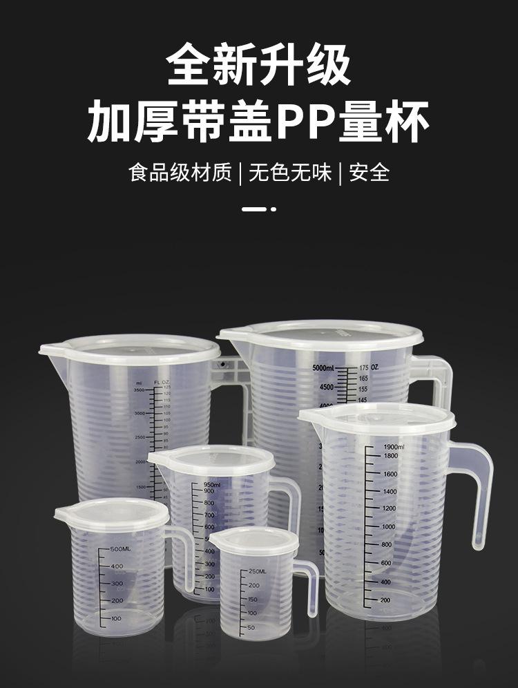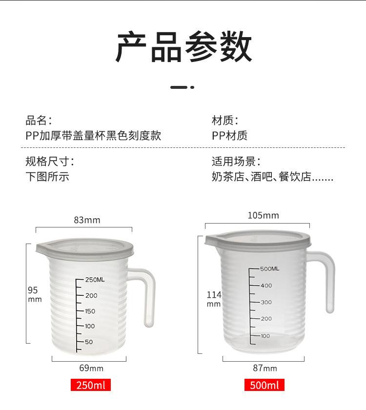 Copo medidor PP balança de linha preta com tampa à prova de poeira leite chá loja cozimento medição pote grau alimentício plástico garrafa de água fria
